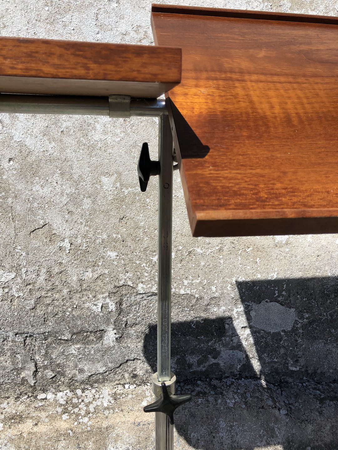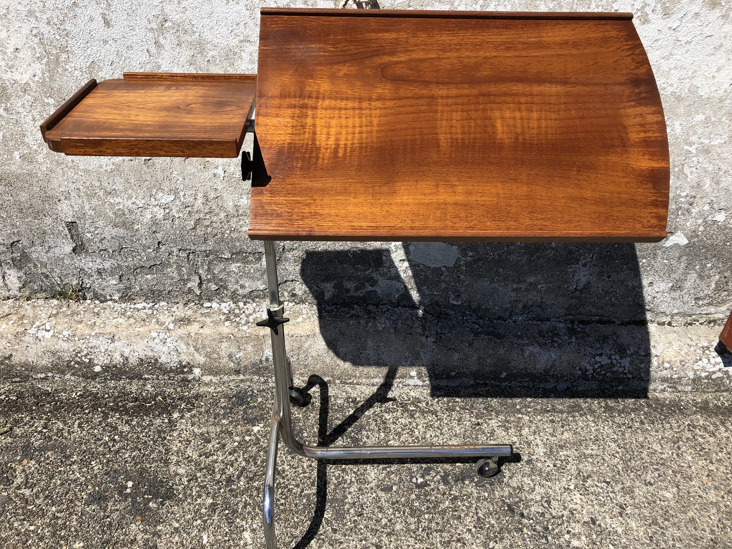 Small office table in teak and metal, can be raised and lowered as well as tilting the large plate. Formerly used for typewriters. Danish modern from the 1960s. Length x width 87x37 cm.