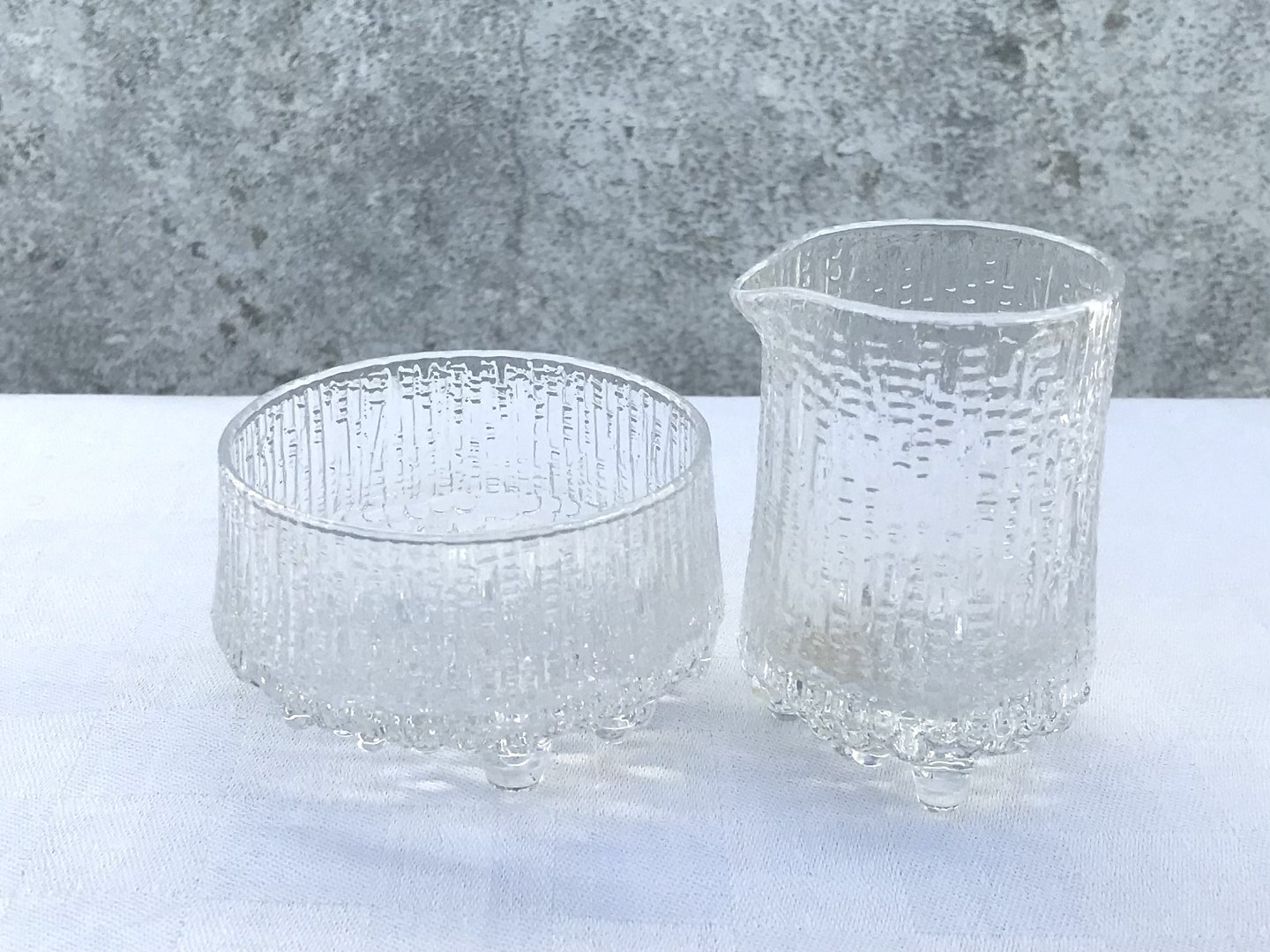 Iittala, Ultima thule, Sukker / flødesæt, skål 8cm i diameter, 5,2cm høj, Kande 8cm høj, 5cm i. Diameter, Design Tapio Wirkkala *Pæn stand*