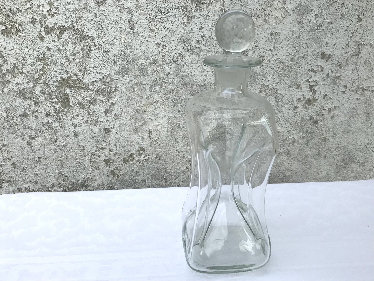 Holmegaard, Klukflaske, Klar, 27cm høj, 9cm bred, Med kugleprop *Pæn stand*