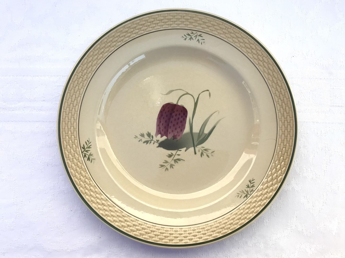 Royal Copenhagen, Aluminia, Victoria II stelform, Vibeæg, Fritillaria meleagris, Middagstallerken, 25cm i diameter, Design Nils Thorsson *Pæn brugt stand*