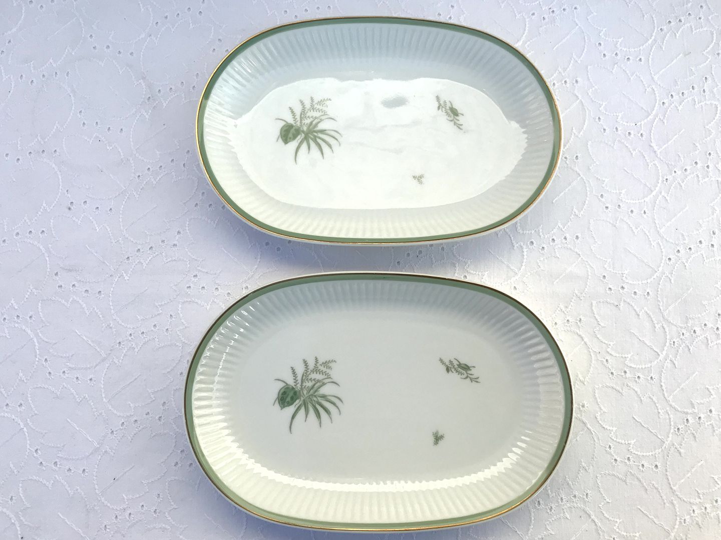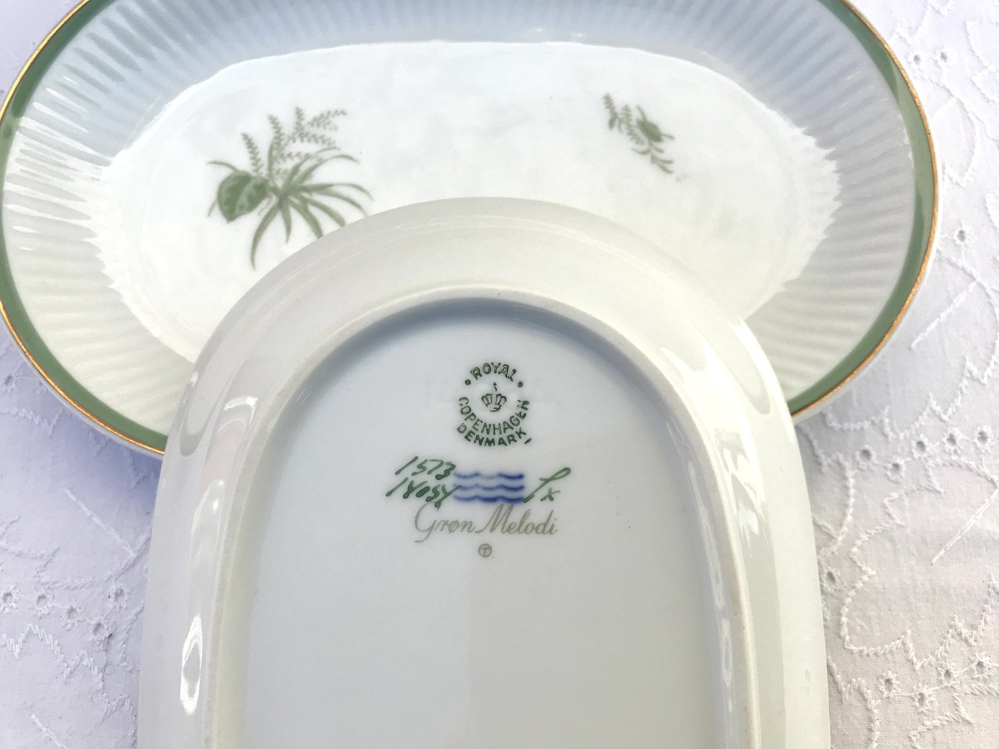 Royal Copenhagen, Grøn melodi, Lille serveringsfad #1513/ 14054, 22cm bred, 14cm dyb, 1.sortering Design Thorkild Olsen *Pæn stand*