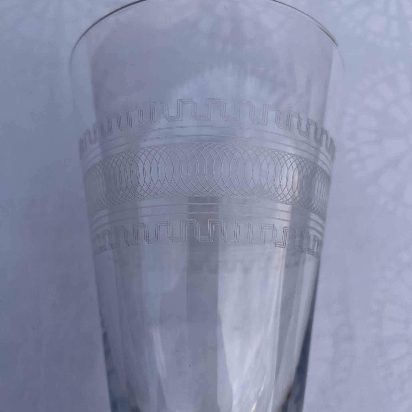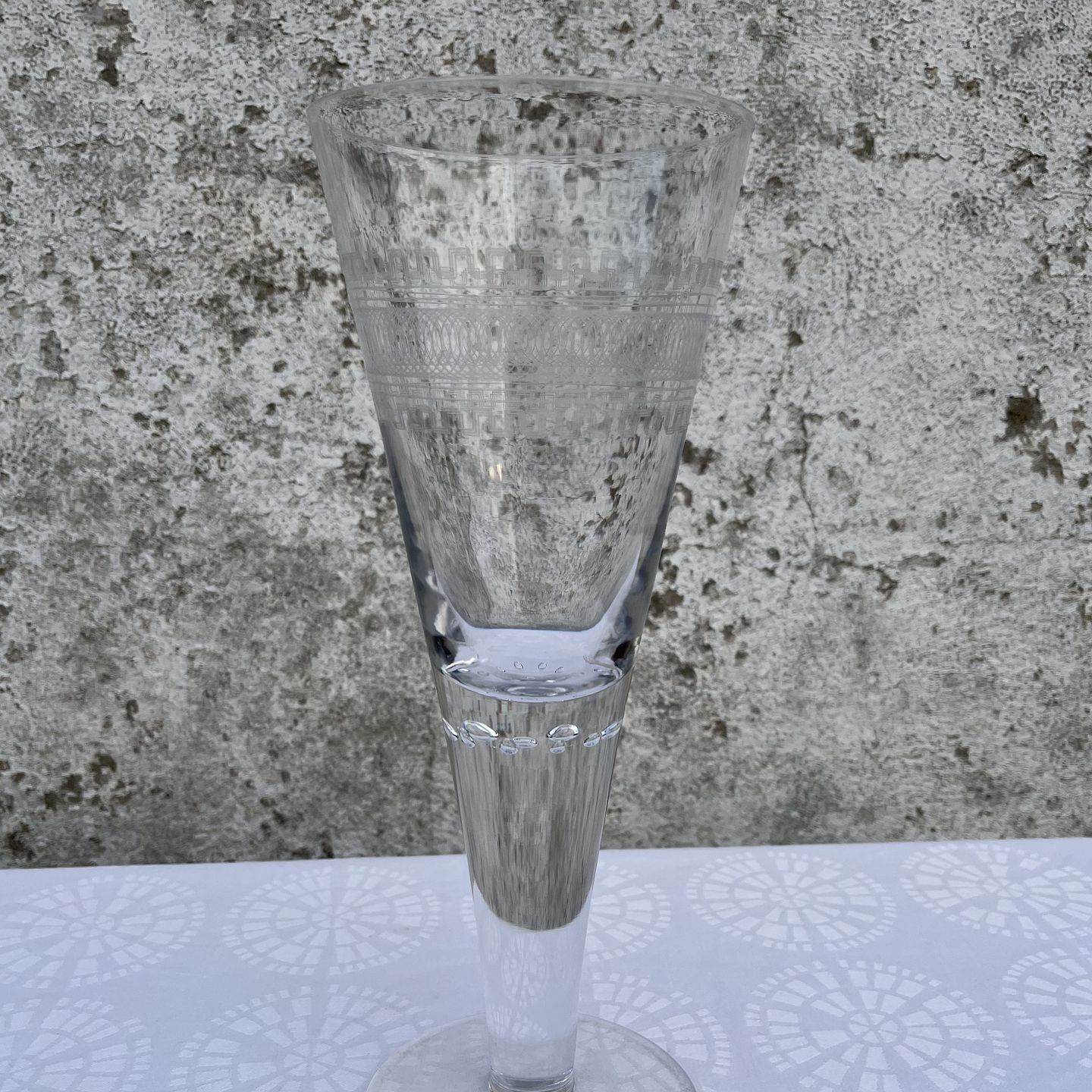 Stor pokal med guillocheret dekoration, Kastrup Glasværk 28cm høj, 11cm i diameter *Perfekt stand*