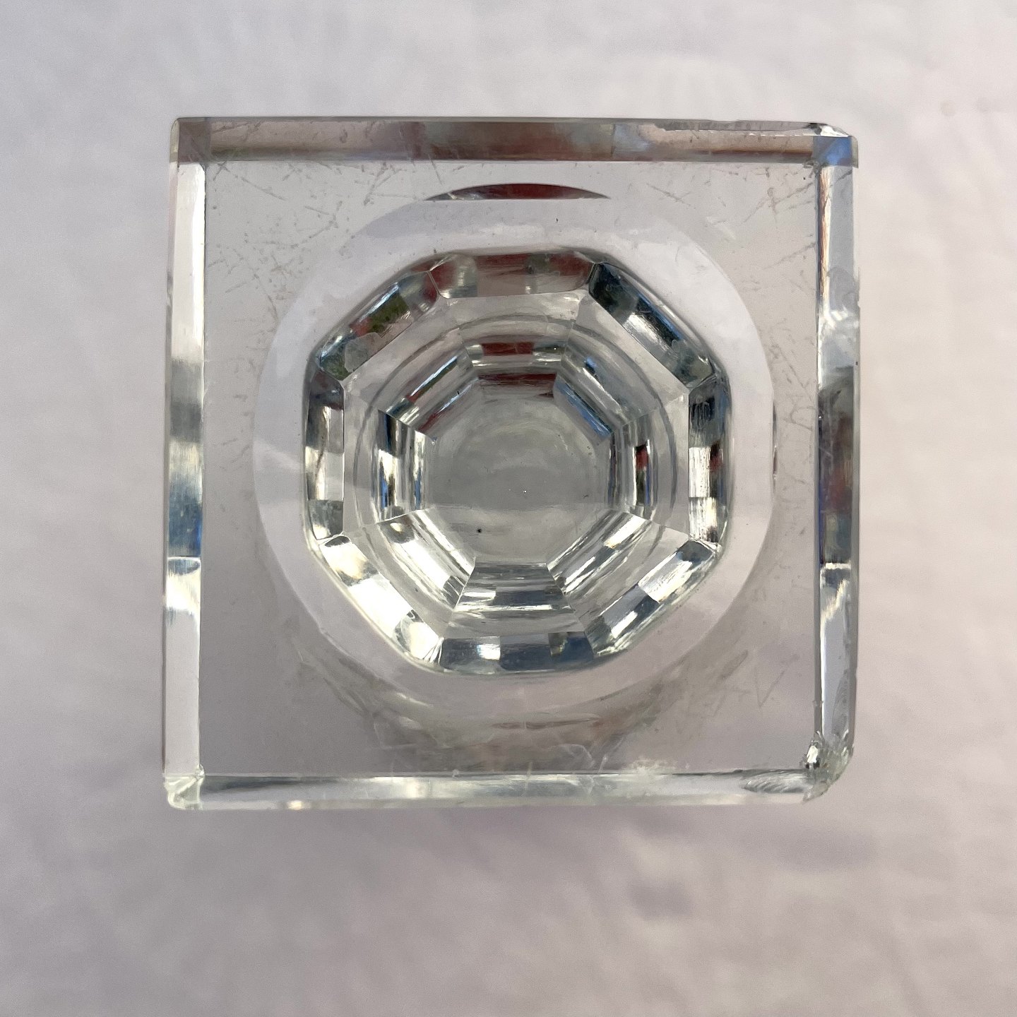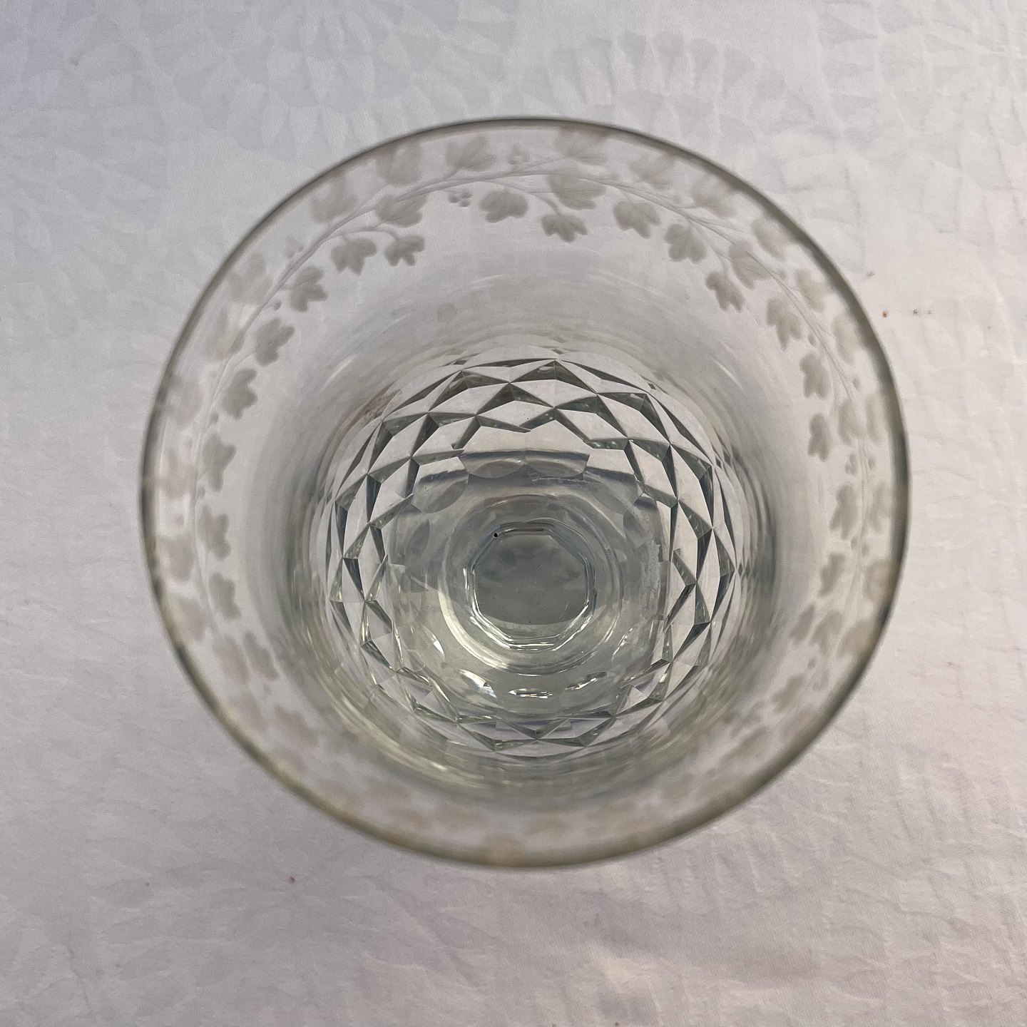Ældre Böhmisk glas, Slebet og graveret, 13,5cm høj, 8cm i diameter *Pæn stand men med fejl (afslag) på fod*