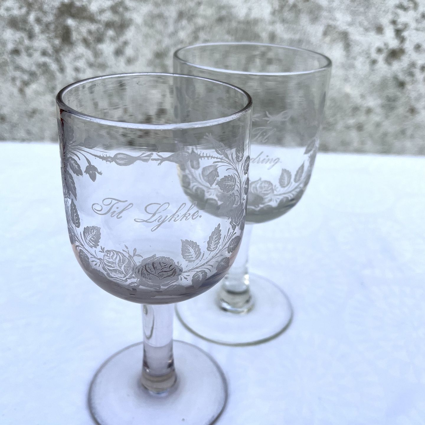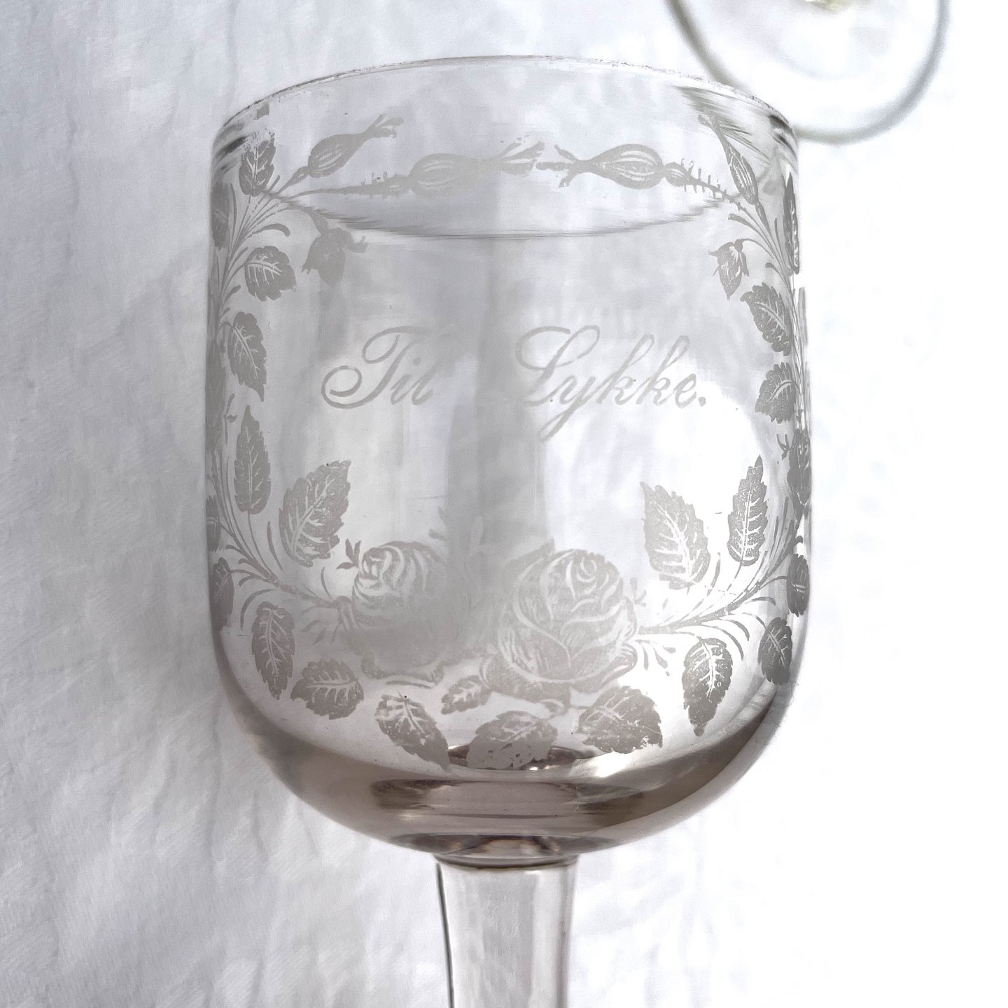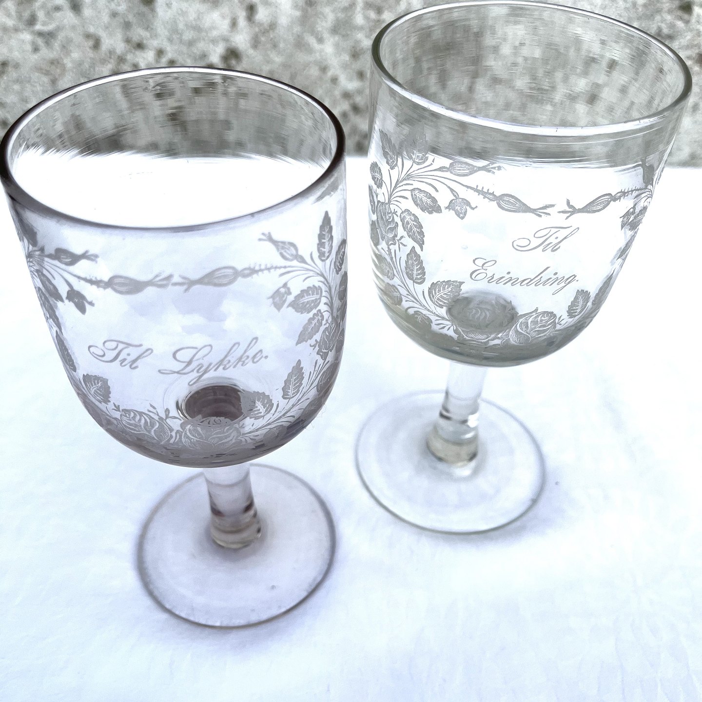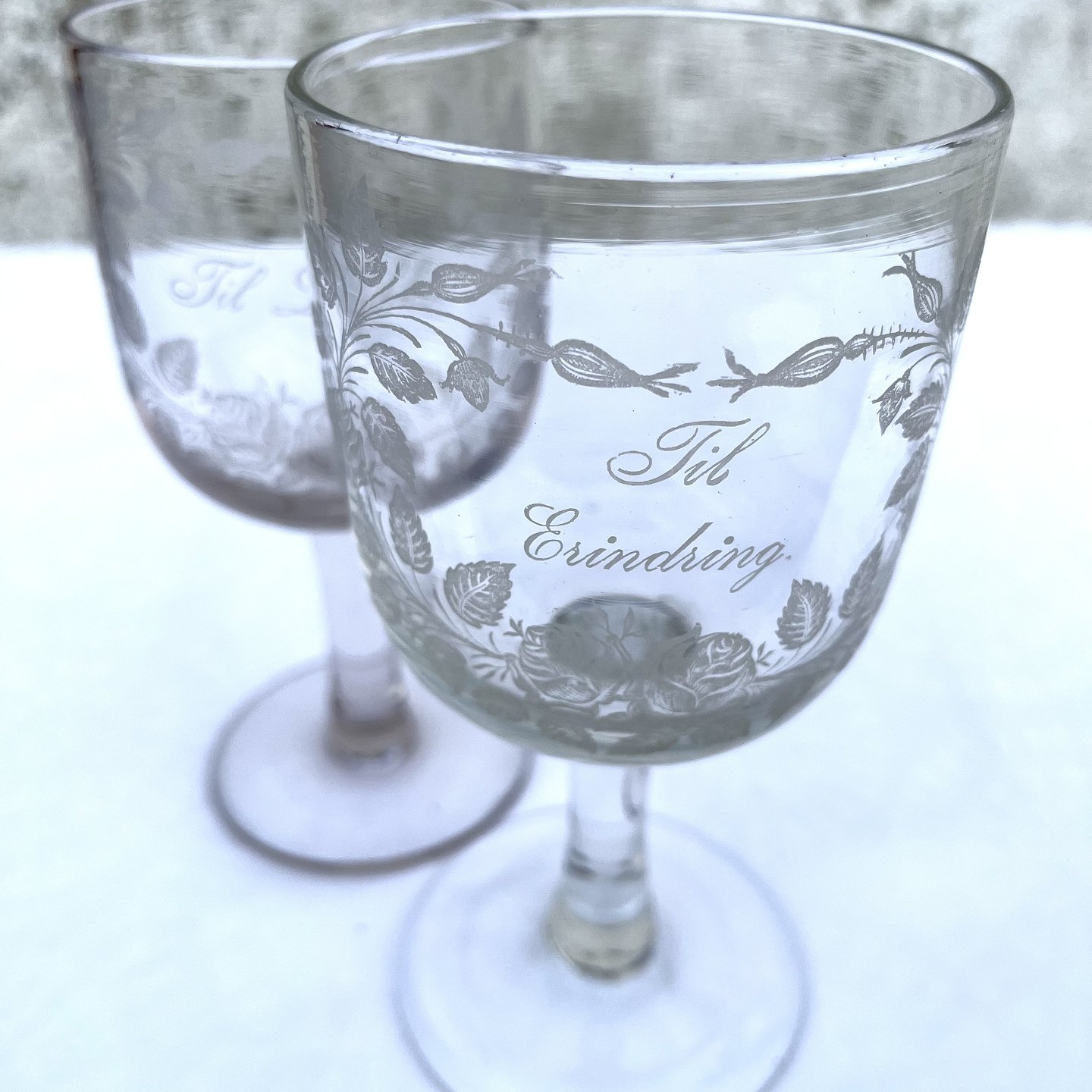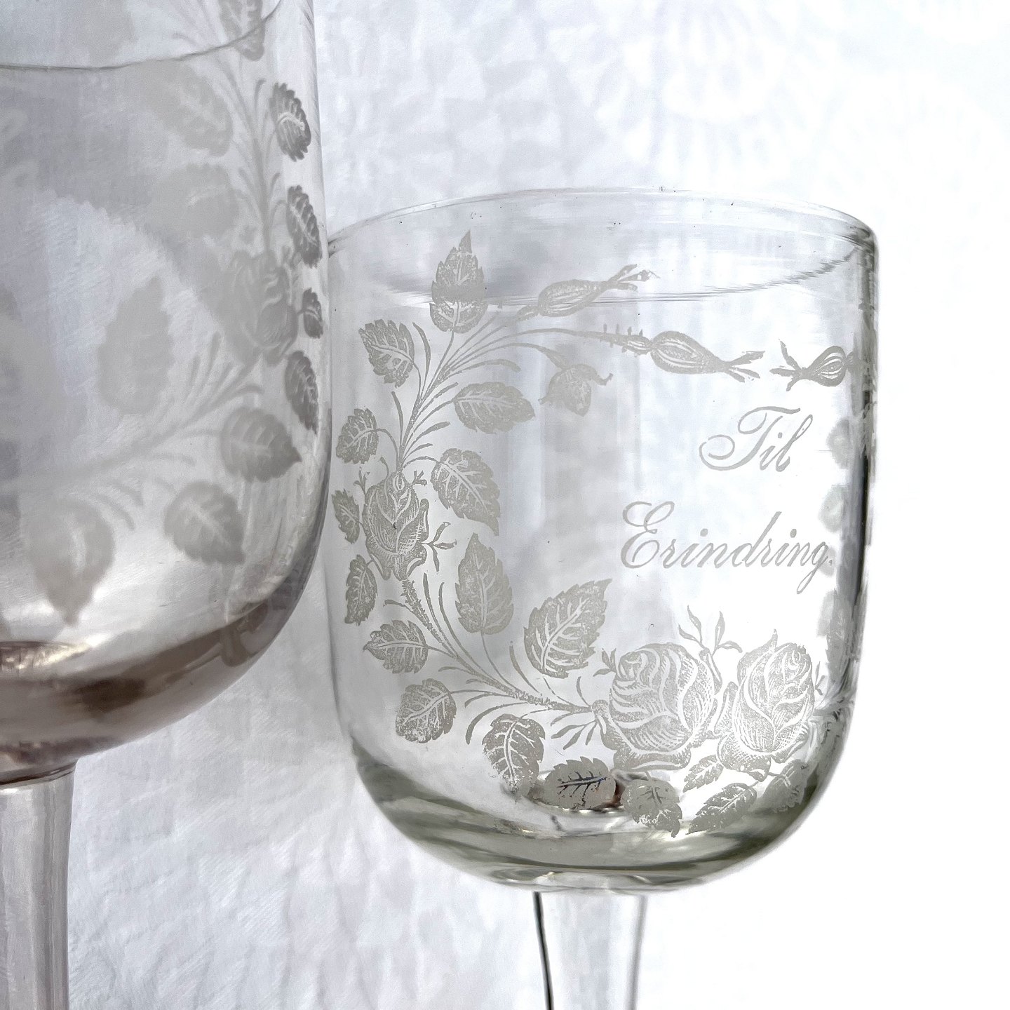 Erindringsglas, “Til erindring” & “Til lykke”, Med blomsterkrans, 16cm høj, 7,5cm i diameter *Pæn stand* Skriv gerne i bemærkninger hvilket glas du gerne vil købe.