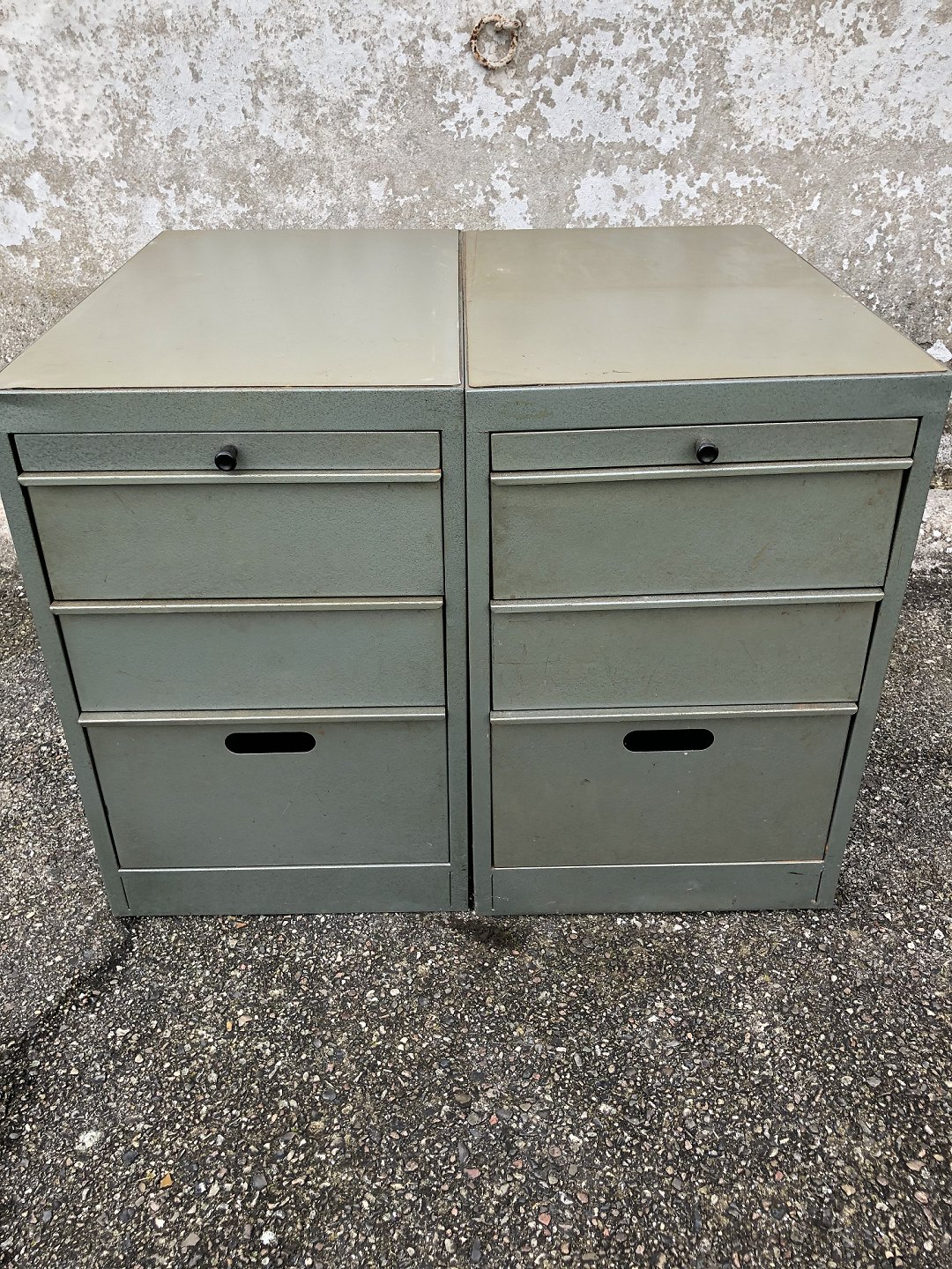 Filed cabinet in painted metal with drawers. Dimensions: HxWxD 68x44x71 cm. Nice used condition. Can evt. stacked / see last image.
