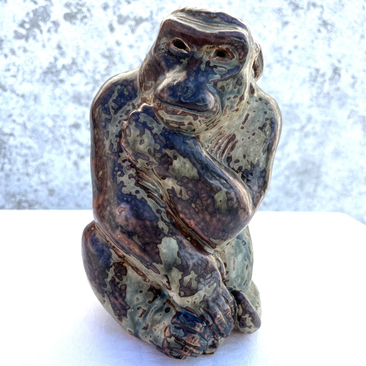 Royal Copenhagen, Stentøjsfigur, Siddende abe #20133, 18cm høj, 11,5cm bred, Design Knud Kyhn *Perfekt stand*