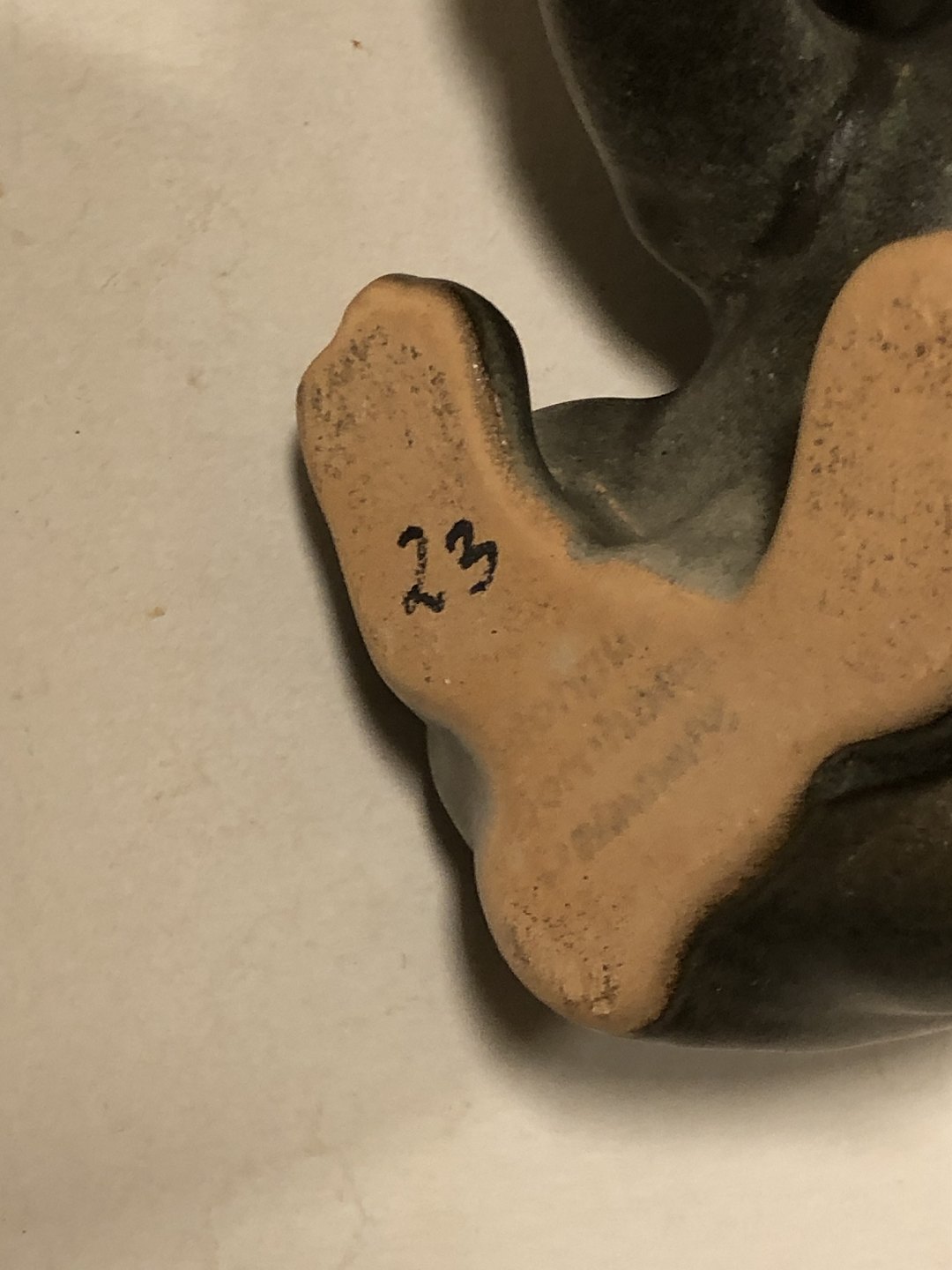 Bornholmsk keramik, Johgus, Bjørn, 10,5cm bred, 7,5cm høj, Utydeligt signeret *Perfekt stand*