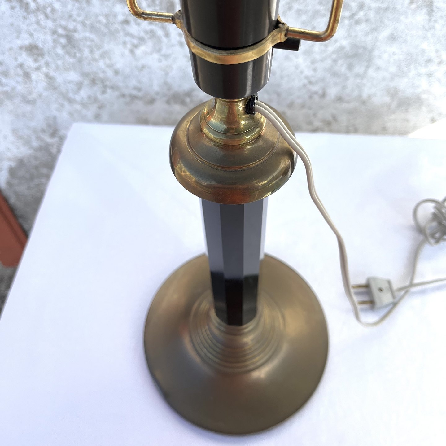 41,5cm høj (Incl. Fatning) 20cm i diameter Messing / sort stamme *Lidt bøjet på foden (se foto) ellers pæn stand *