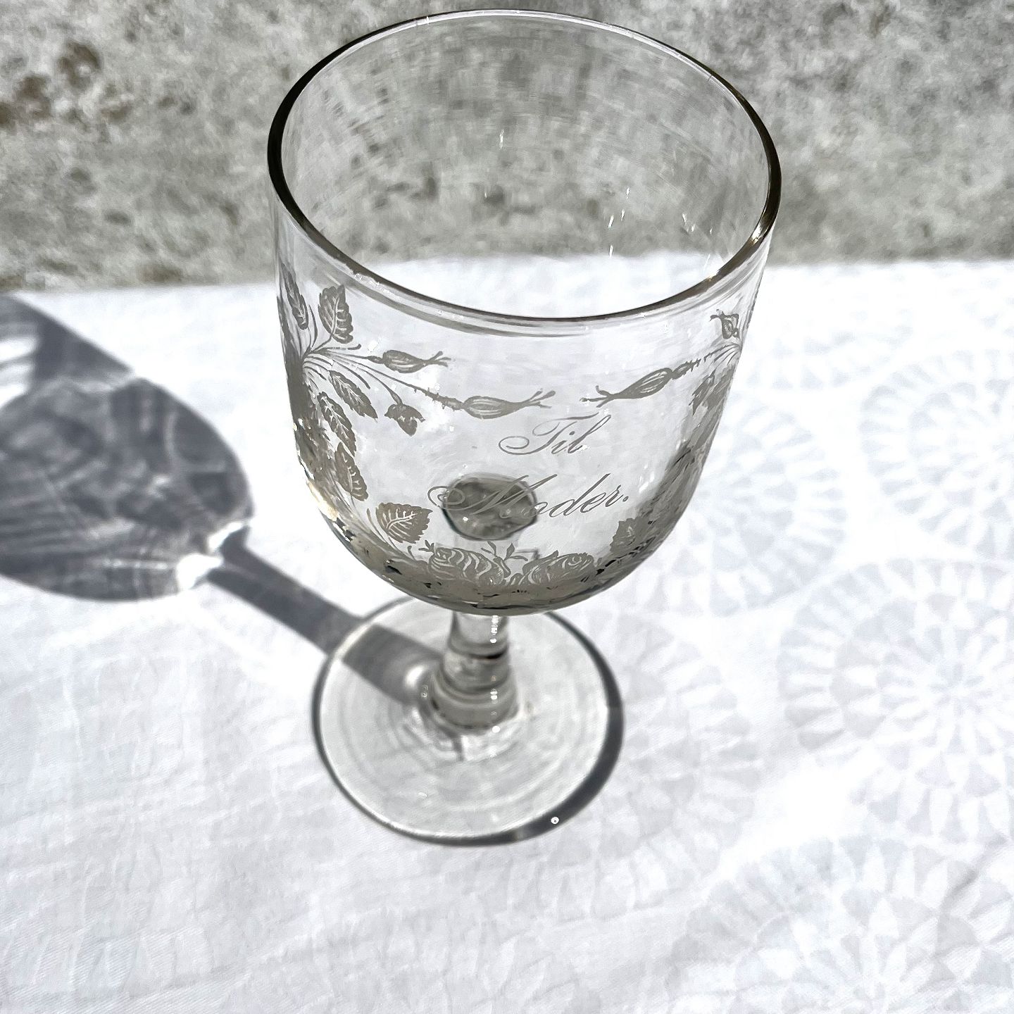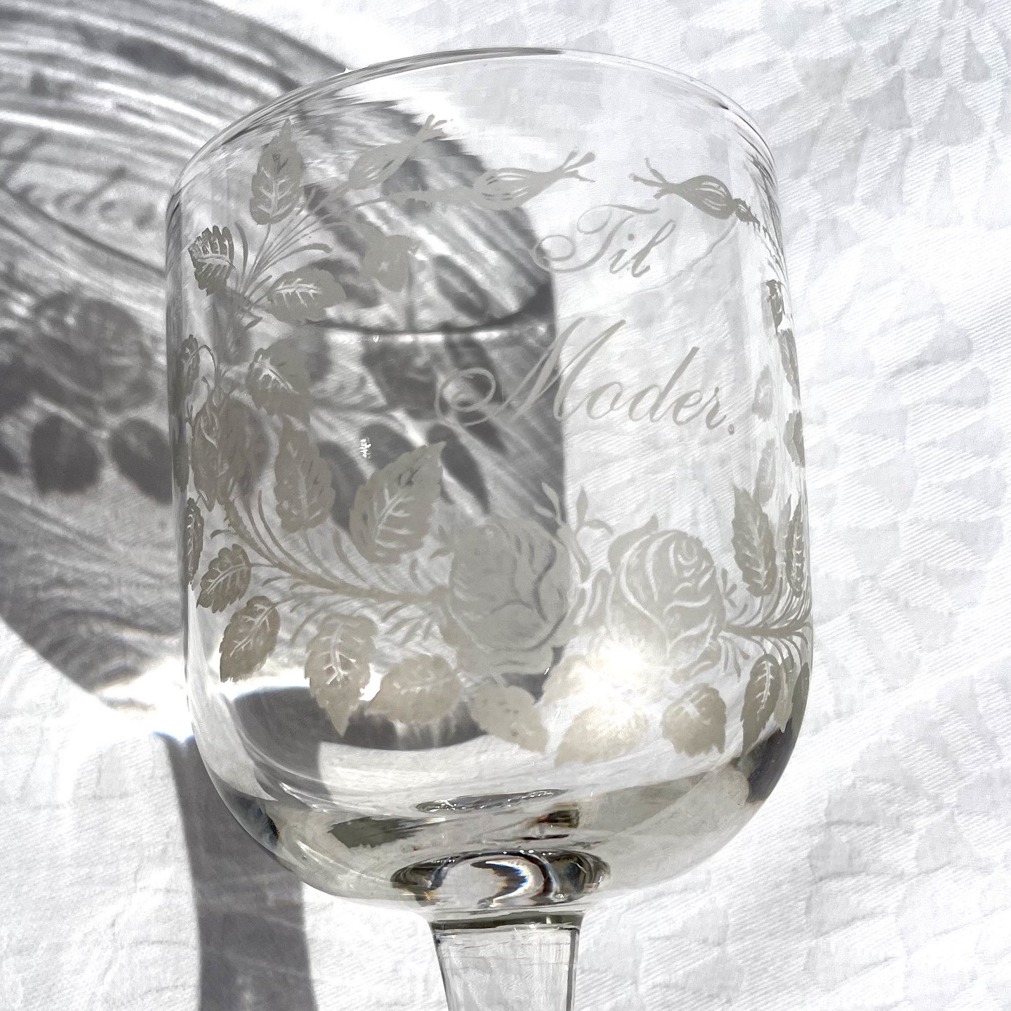 Kastrup glassworks, Memorial glass, “For mother”, With flower wreath, 15.8cm high, 7.5cm in diameter * Nice condition *