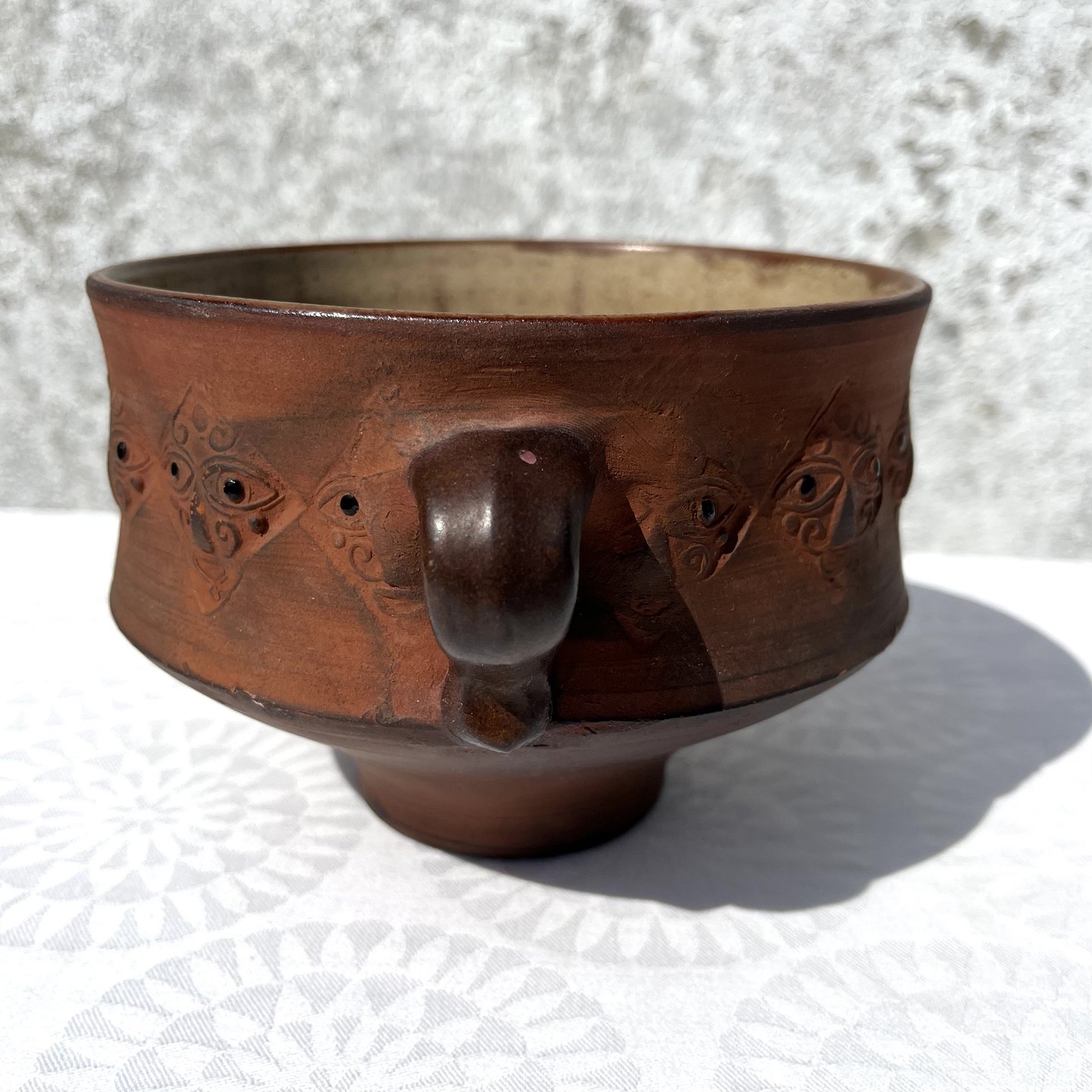 Dybdahl keramik, Skål med ansigter, 19,5cm i diameter, 11,5cm høj, Design Palle og Magrethe Dybdahl *Pæn patineret stand*