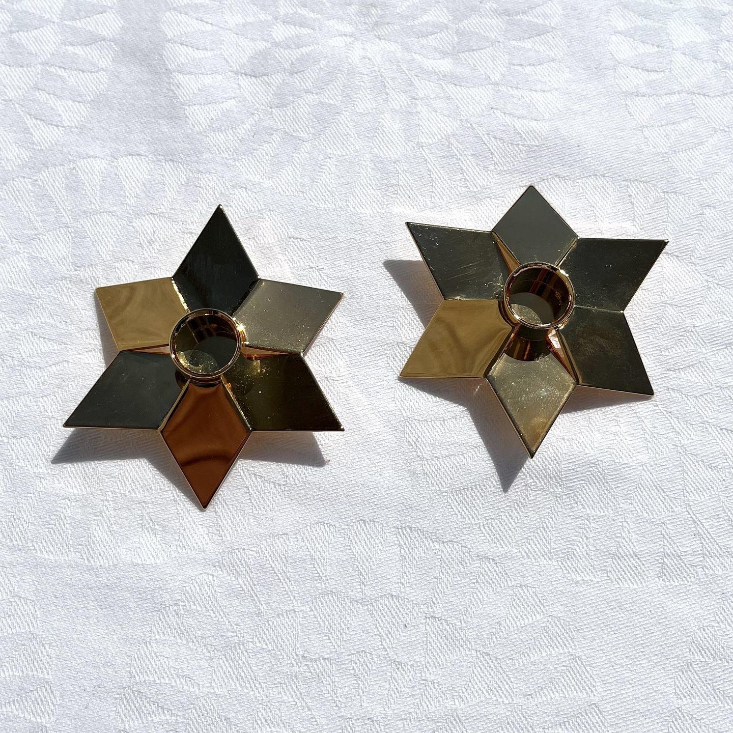 Gerog Jensen, Golden Christmas, 2 stk lysholder, Forgyldt stjerne, 6,5cm i diameter *Perfekt stand i original æske*