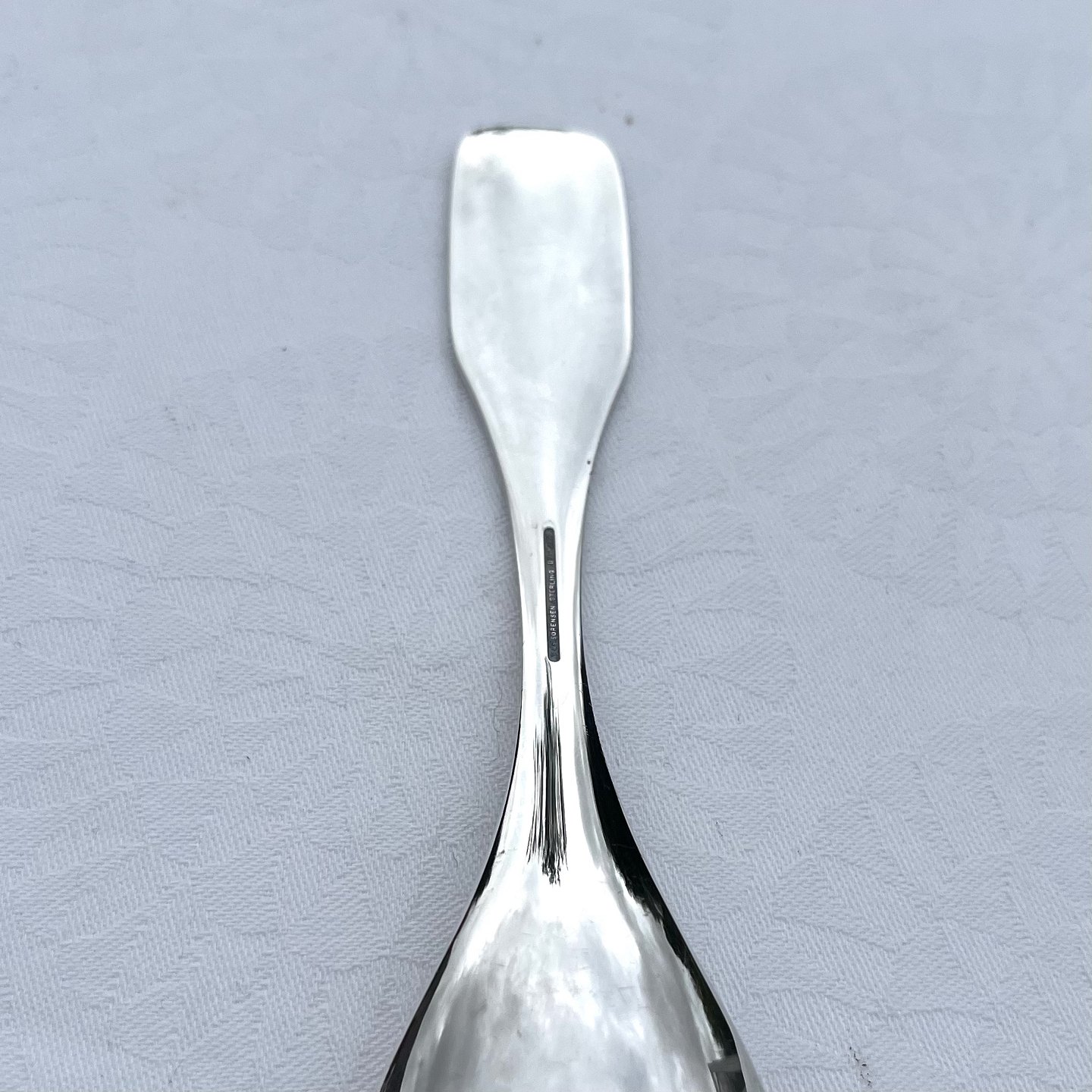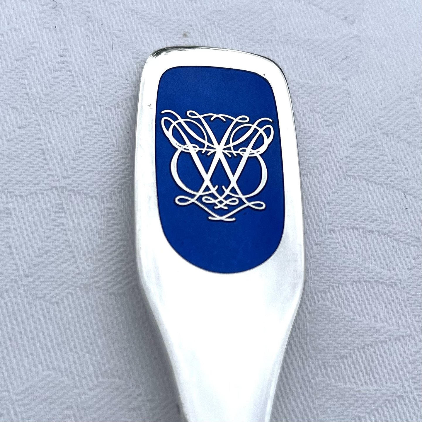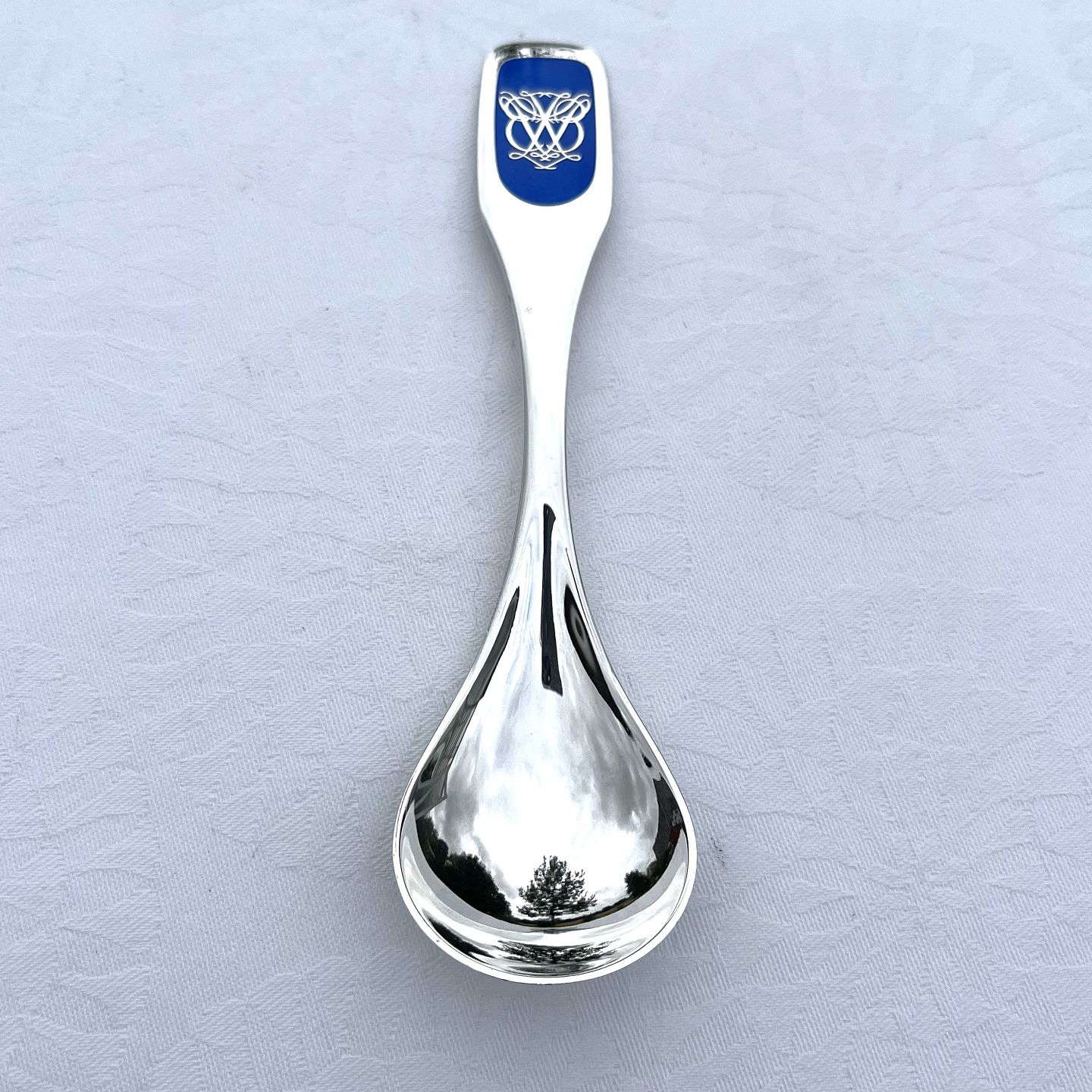 Barneske i sterlingsølv med monogram i emalje. Fremstillet hos W&S Sørensen, 15 cm lang, pæn stand.