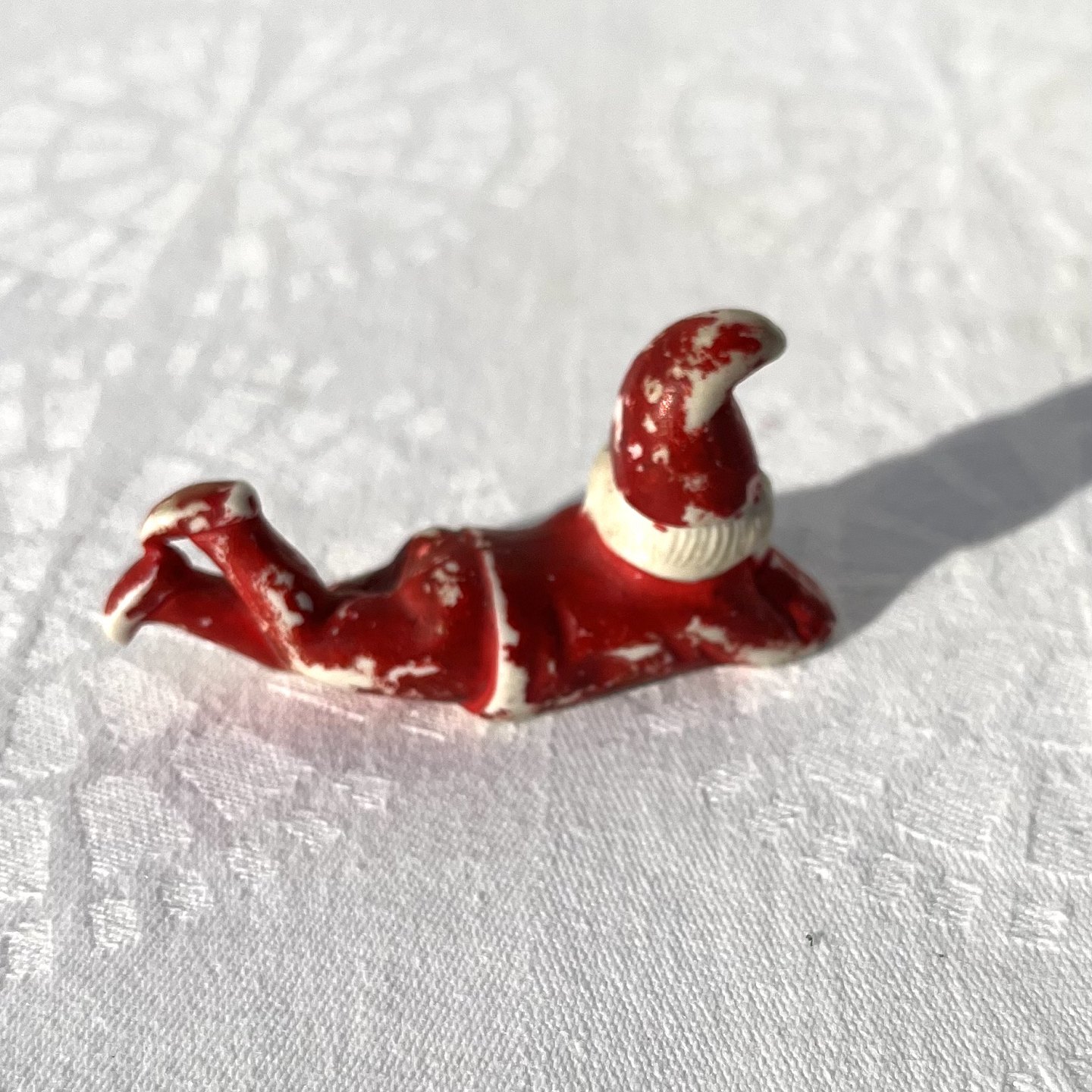 Reclining porcelain gnome, 6.5 cm long, From the beginning of the 1900s *Patinized*