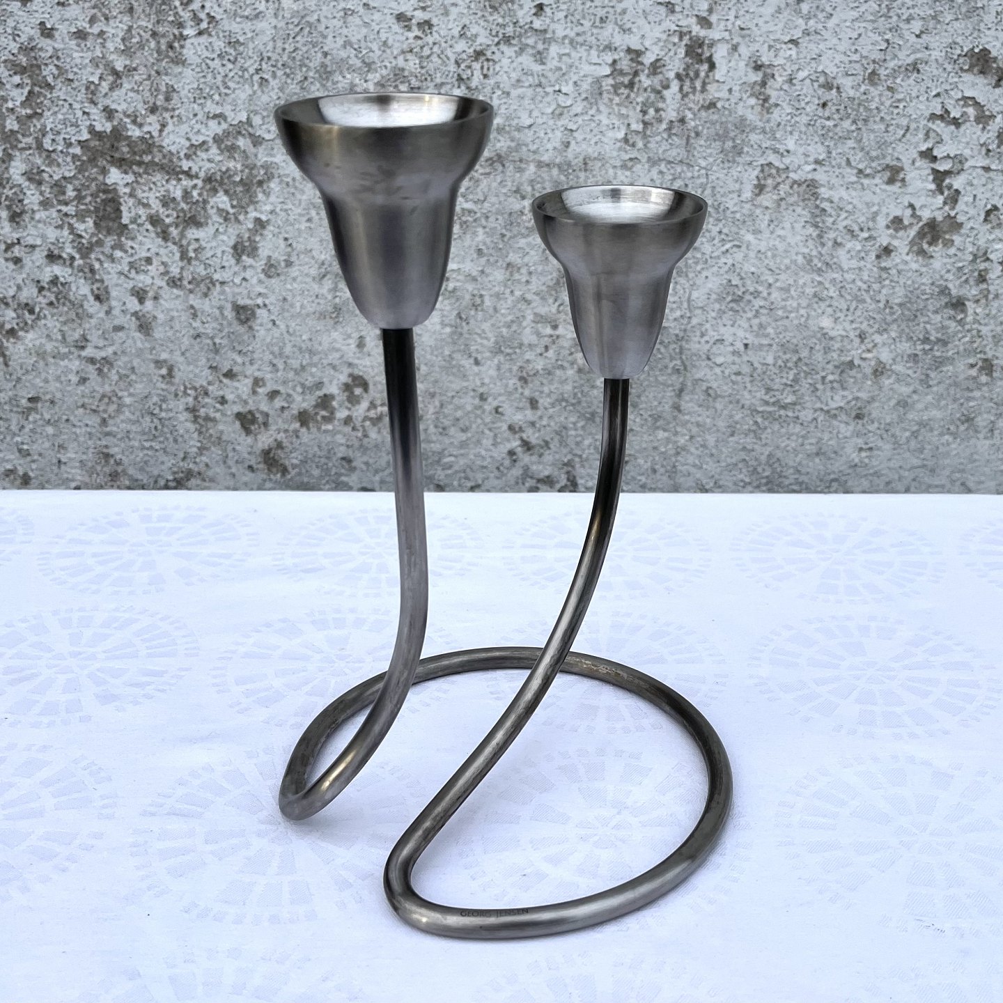Georg jensen, Swing Lysestage, Dobbelt, Rustfrit stål, 22cm høj, 14,5cm i diameter, Design Jens Jensen *Pæn brugt stand*