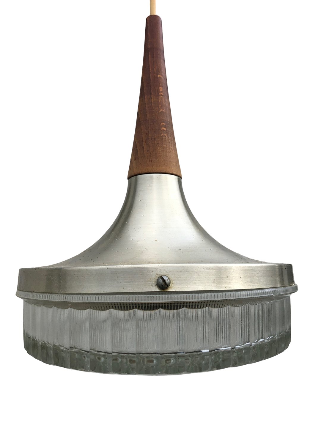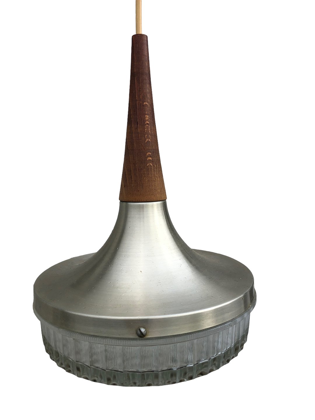 Loftlampe i teaktræ, glas og metal fra 1960'erne. diameter ca. 20 cm, højde ca. 28 cm *Pæn stand*