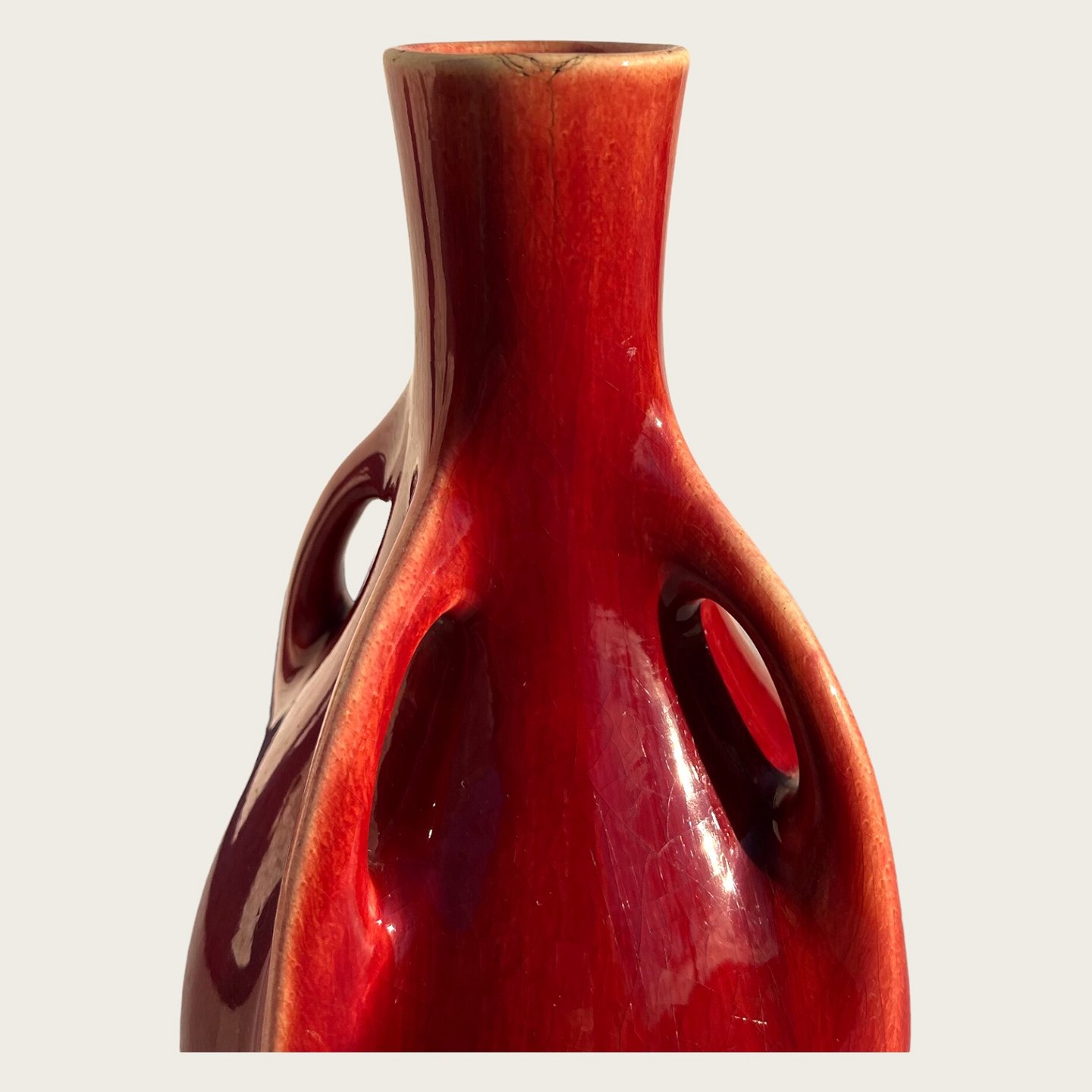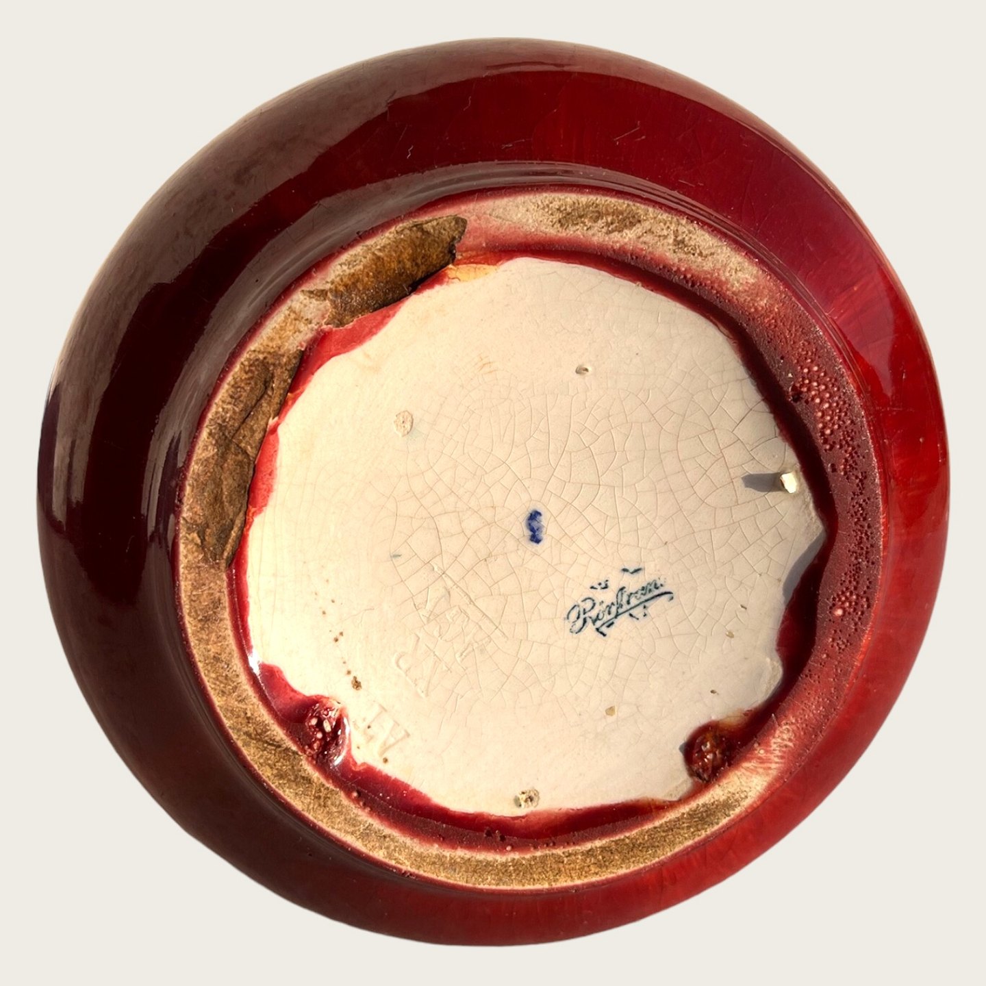 Rörstrand, Alf Wallander, Blood-red glazed vase with naturalistic handle, Art Nouveau from around 1900, 25cm high, 18cm wide, *With slight damage/ edge chipping (see photo)*