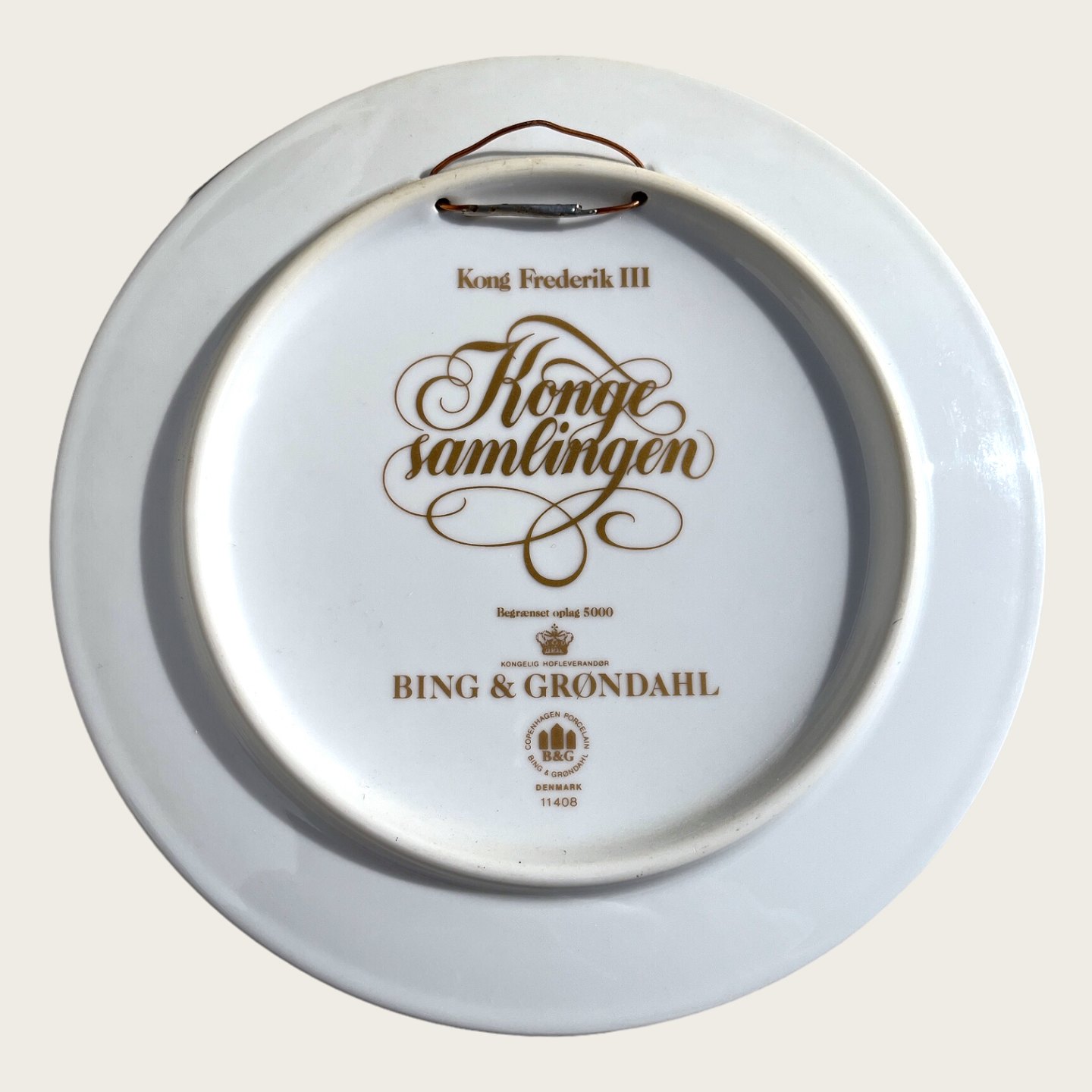 Bing & Grøndahl, Kongesamlingen, Konge platte, Kong Frederik III, 23cm i diameter, Udgivet i 1984, Design Ivan Falkenberg *Perfekt stand*