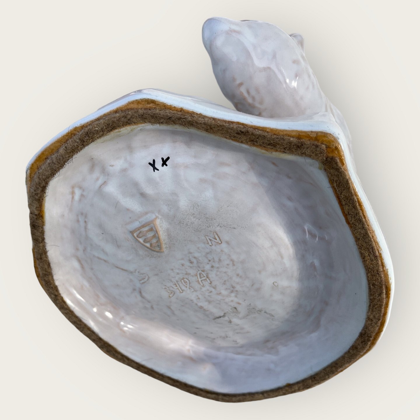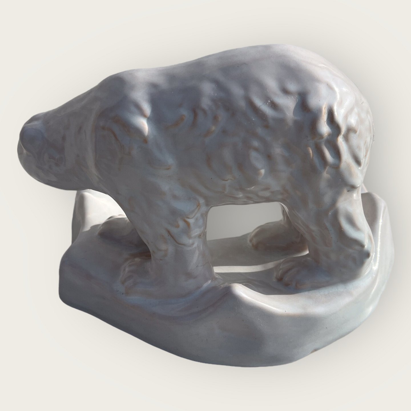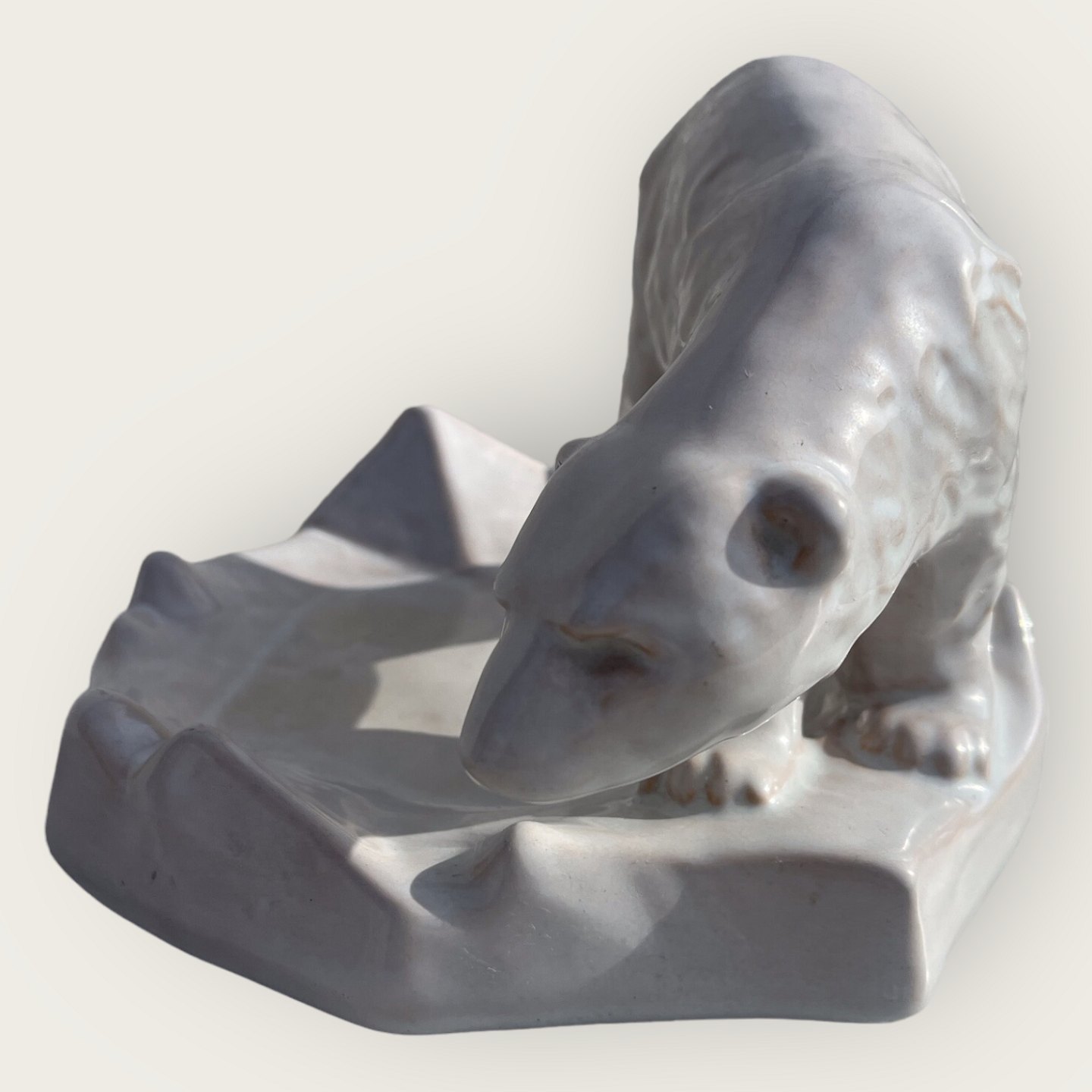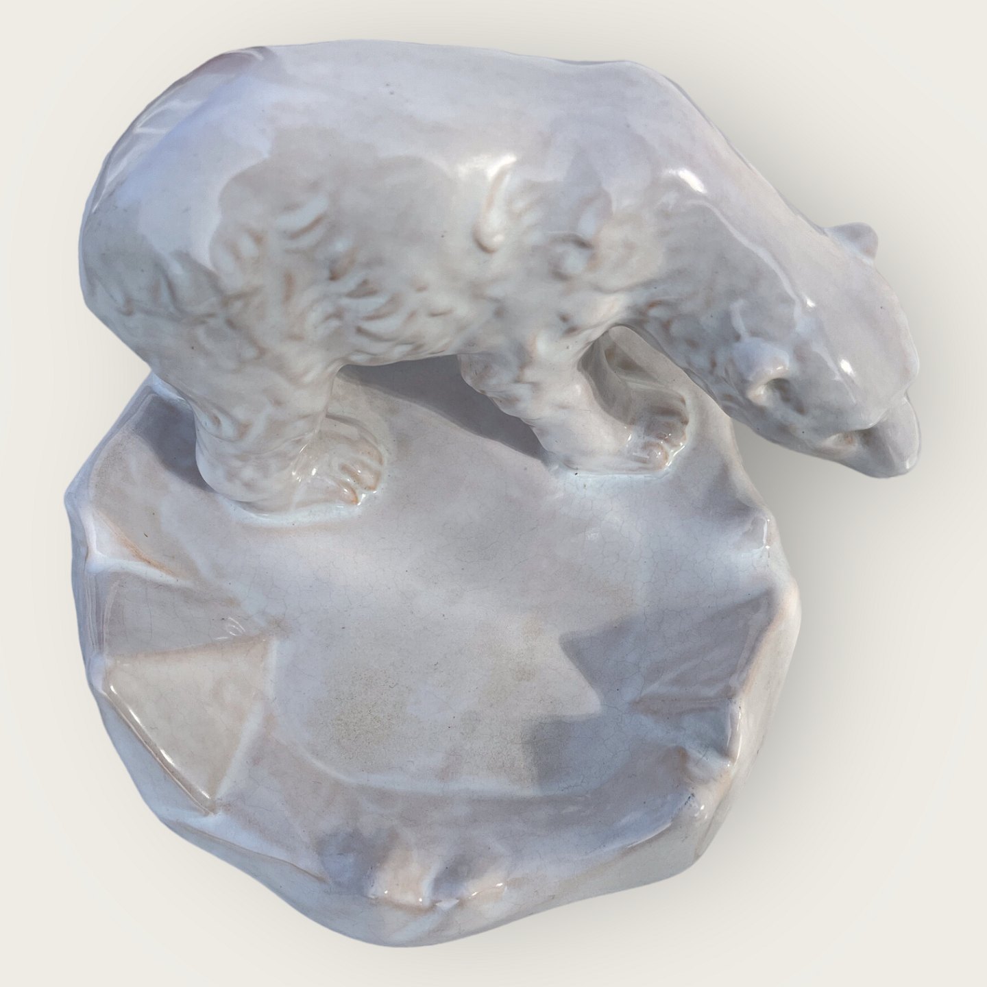 Bornholm ceramics, Michael Andersen, Polar bear on dish, 19cm wide, 14cm high, no. 348A *Nice condition*
