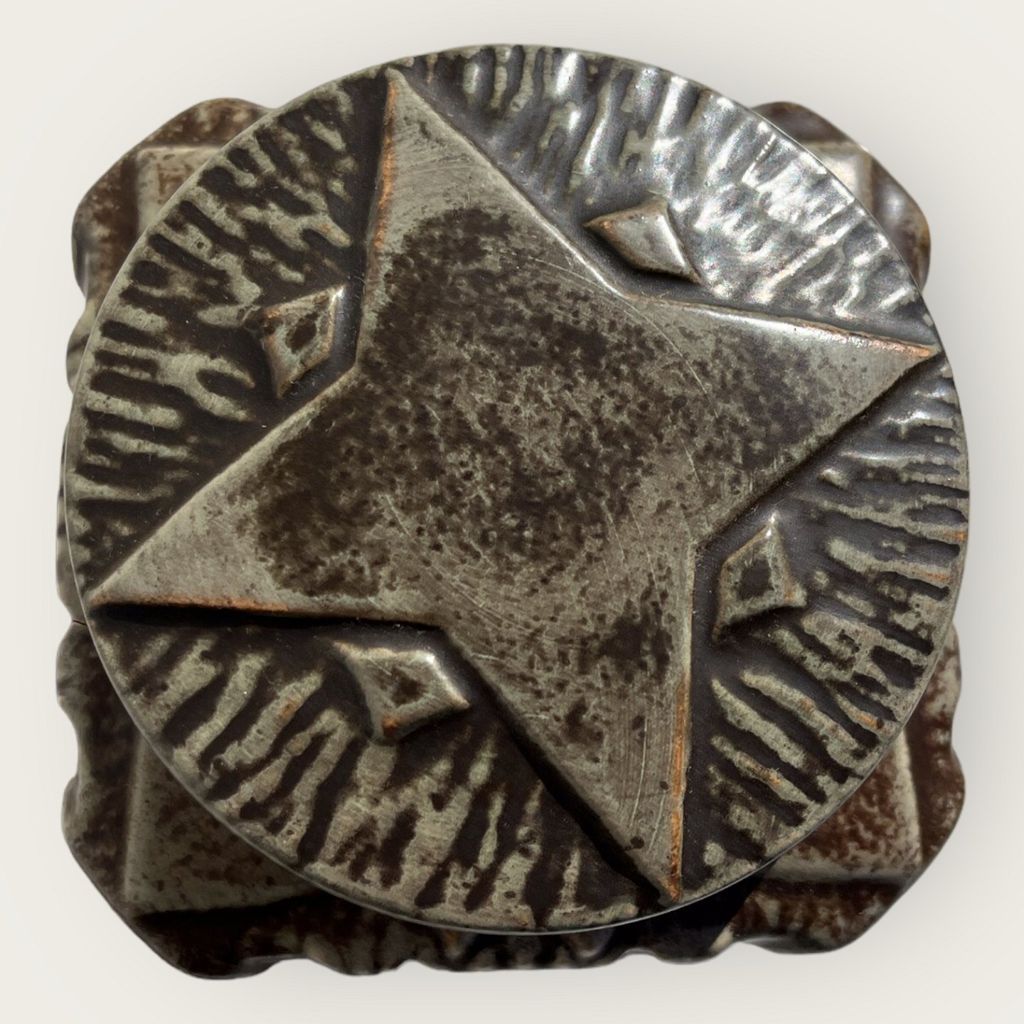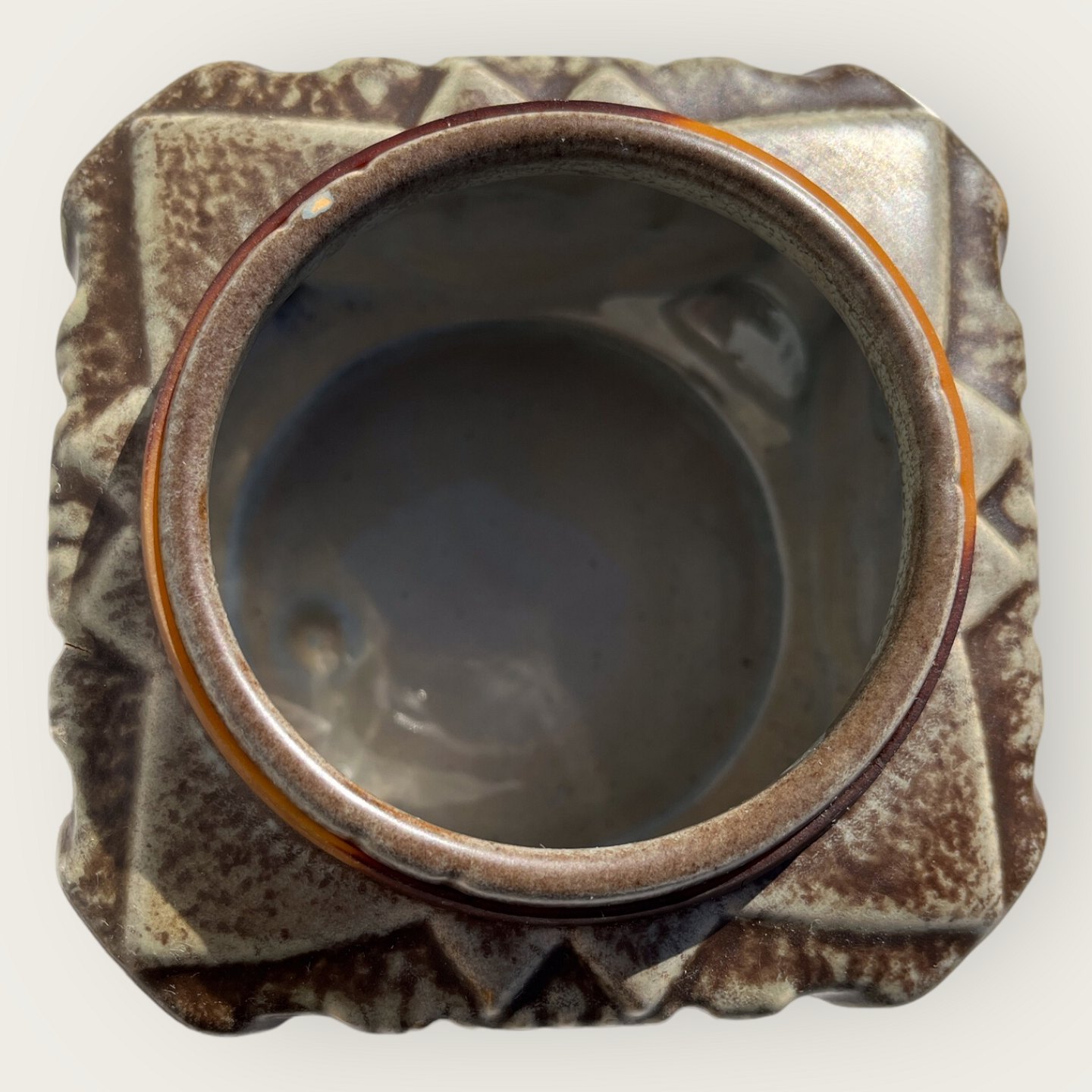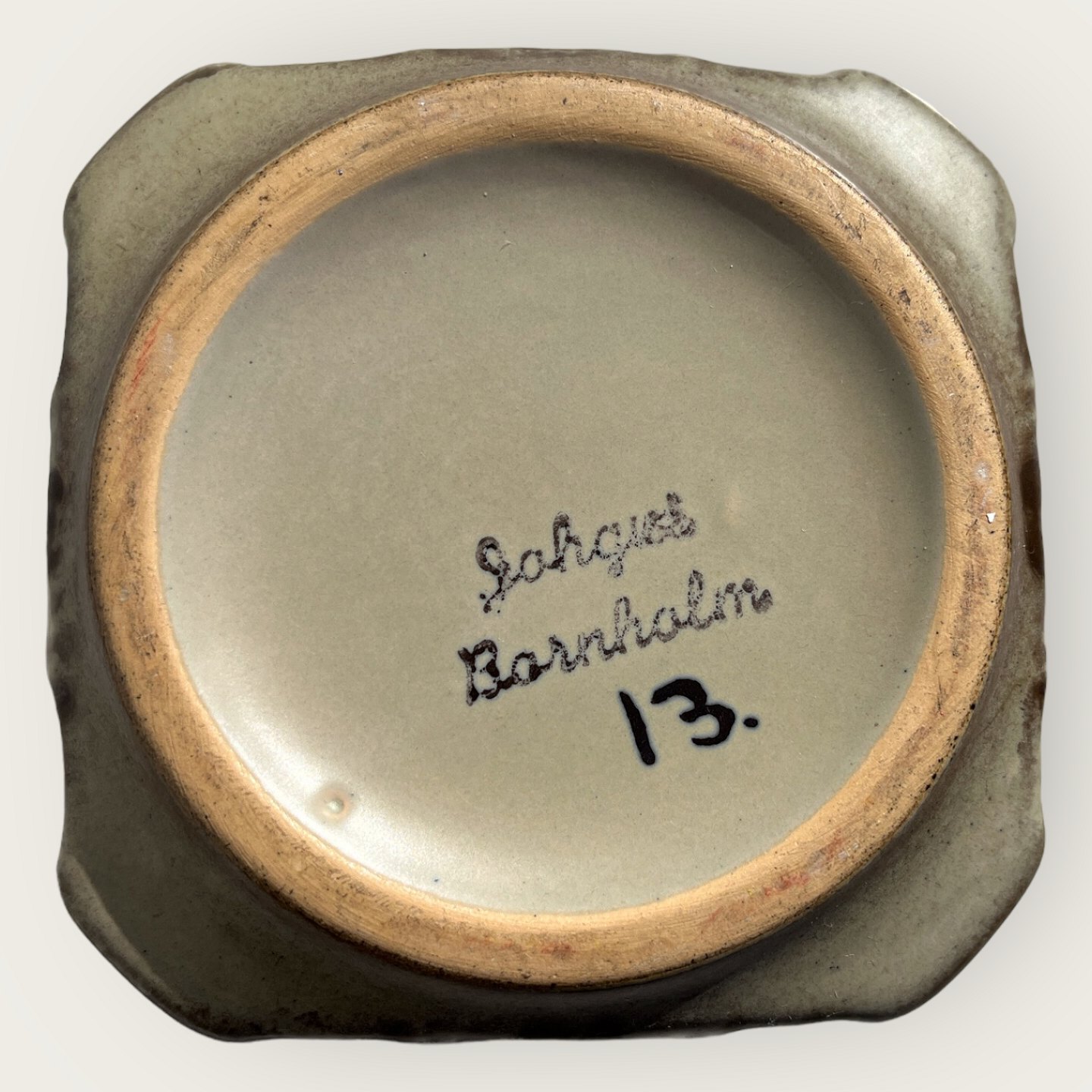 Bornholmsk keramik, Johgus, Lågkrukke, 10cm høj, 11cm / 11cm *Pæn stand men med lidt ujævnheder i kanten*