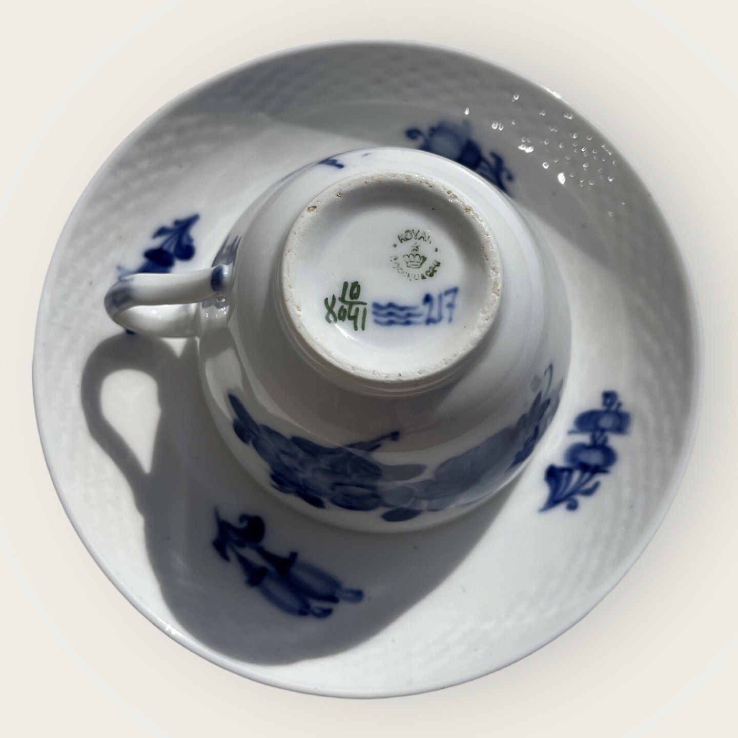 Royal Copenhagen, plaited blue flower, coffee cup #1/ 8041, 8.5cm in diameter, 7cm high, 2nd sorting, Design Arnold Krog *Nice condition but with some sulfur stains*