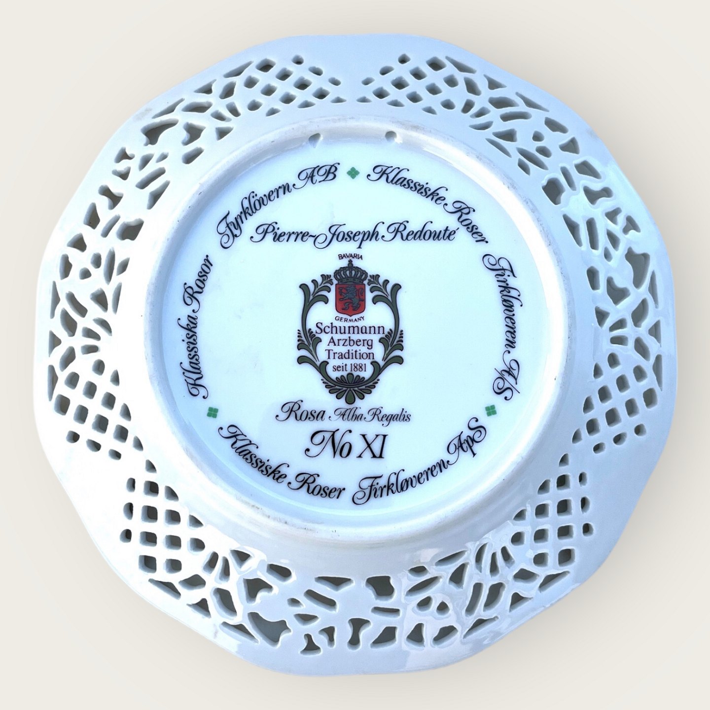 Christineholm, Firkløveren, Nr. 11, Klassiske roser med gennembrudt fane, 19cm i diameter *Perfekt stand*