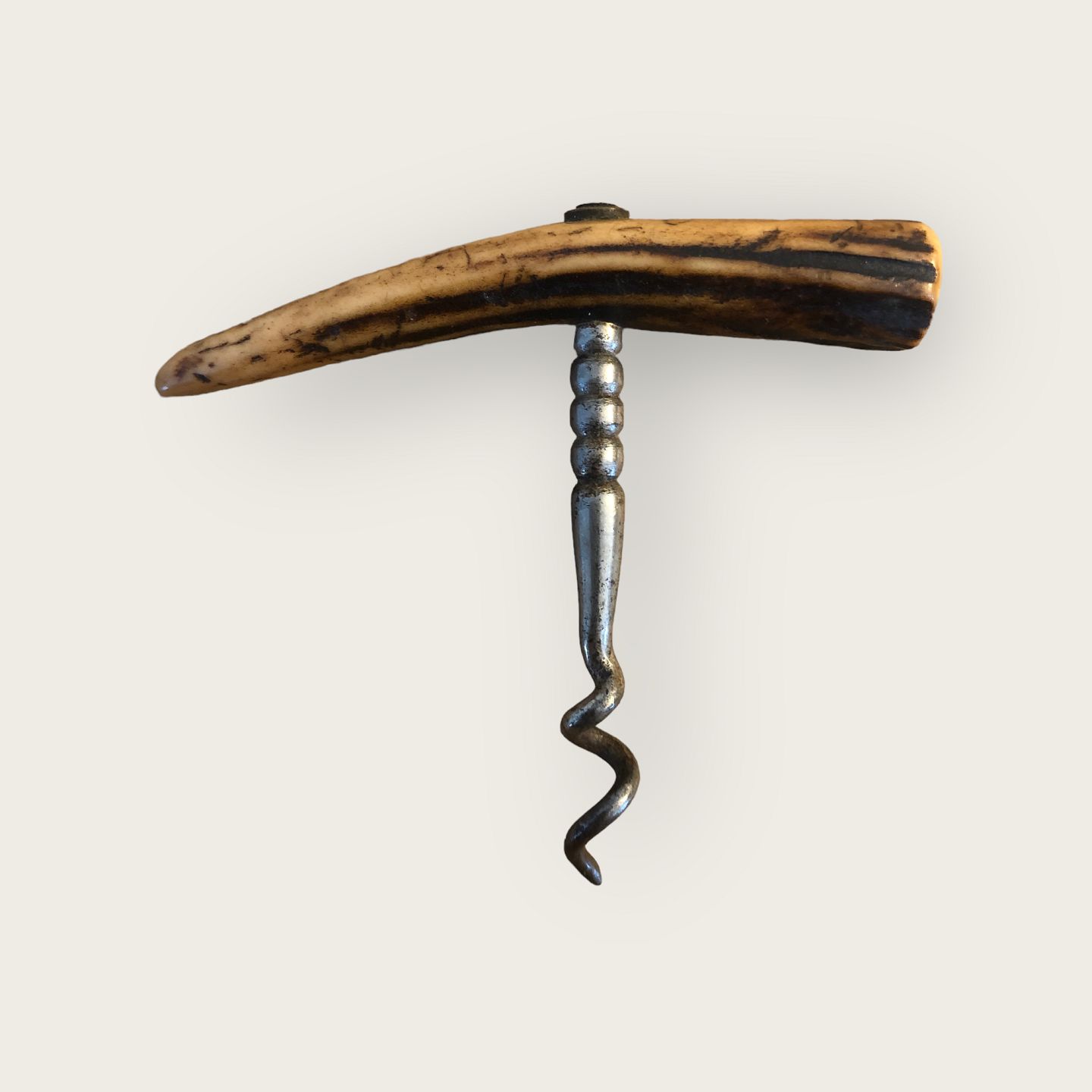 Ældre proptrækker med håndtag af Hjortegevir. Mål: 9x8 cm