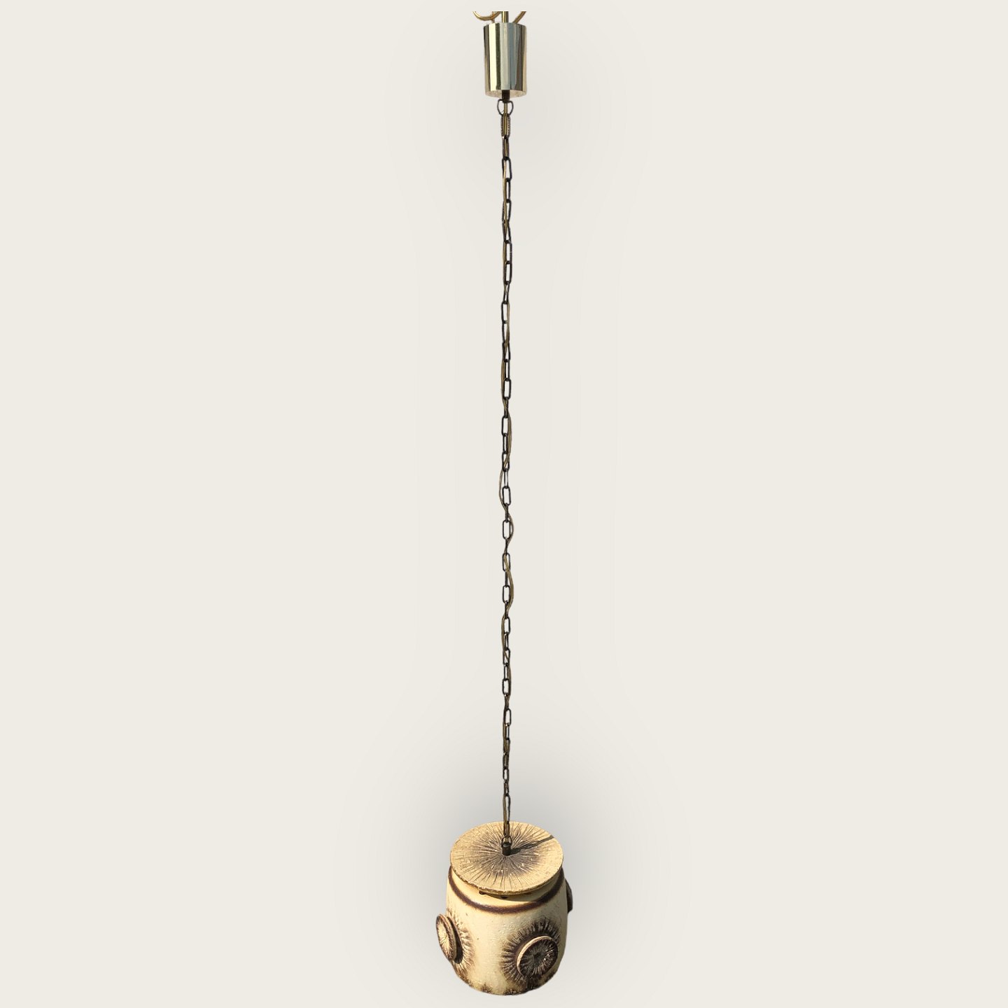 Søholm, Keramiklampe, fra 1970'erne. Lang kæde til ophæng. Mål ca. højde 26 cm, diameter 23 cm, Fin stand.