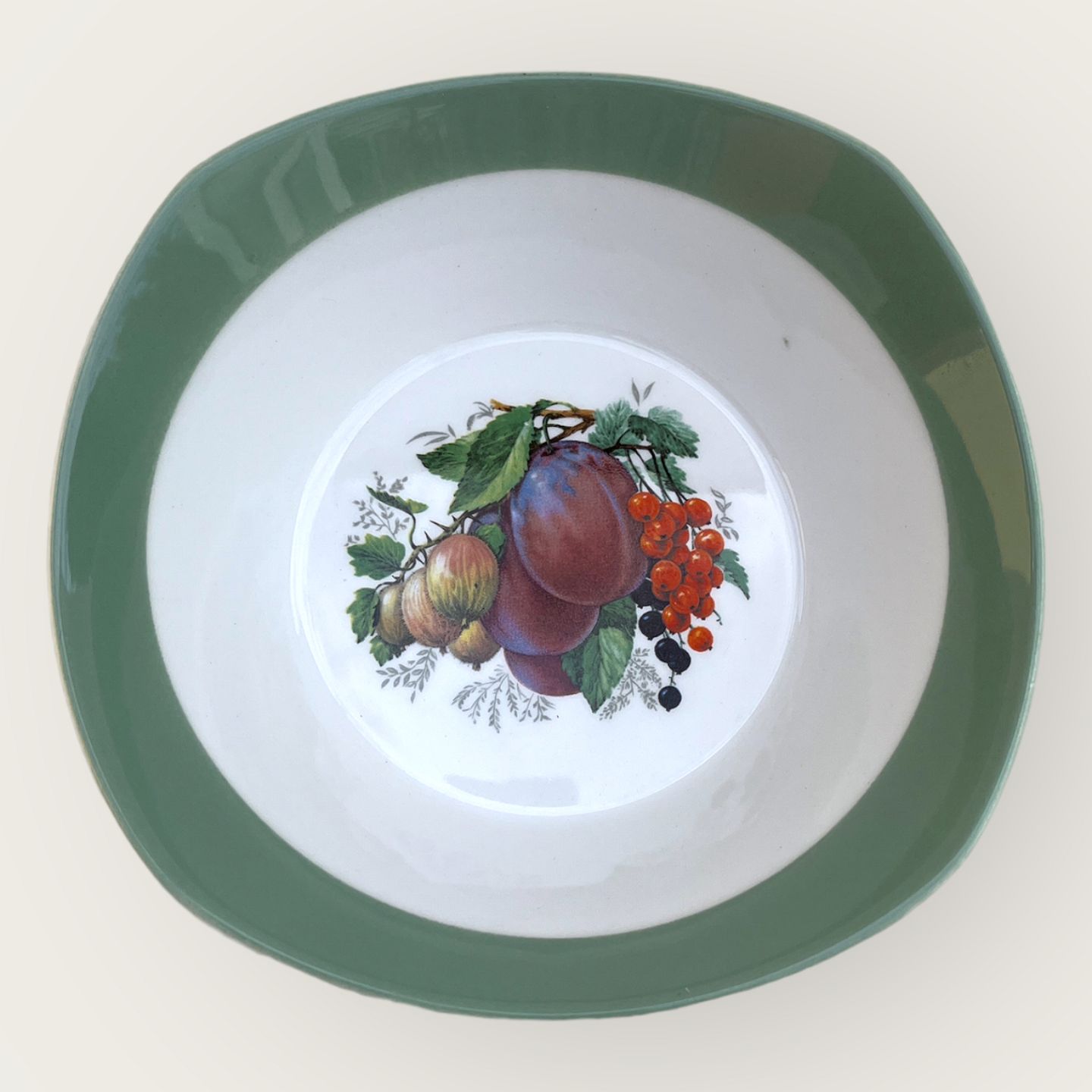 Figgjo Flint, Norway, Frugtskål med blomme motiv, 15,5cm / 15,5cm *Pæn stand*