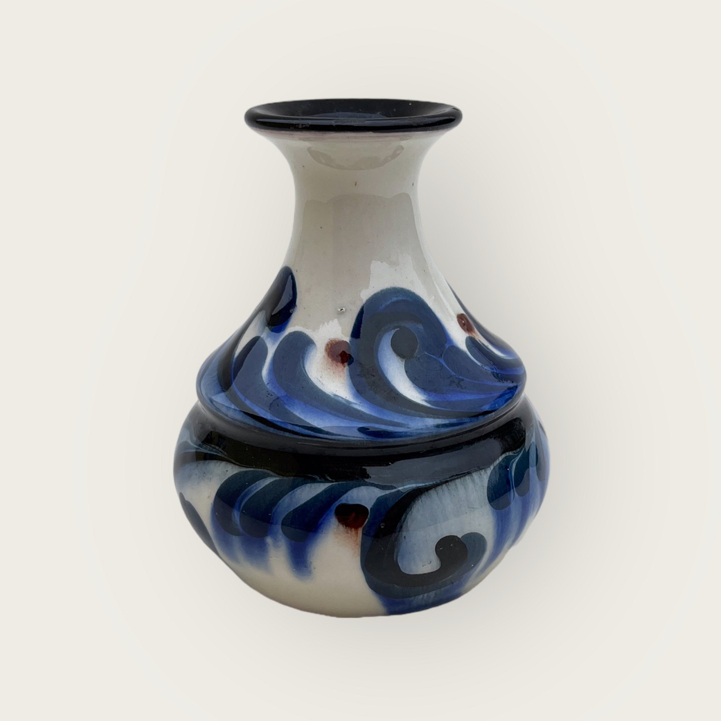 Cow horn painted pottery, Vase with blue and white glaze, No. 558, 9cm in diameter, 10cm high *With a very small chip under the bottom, otherwise good condition*