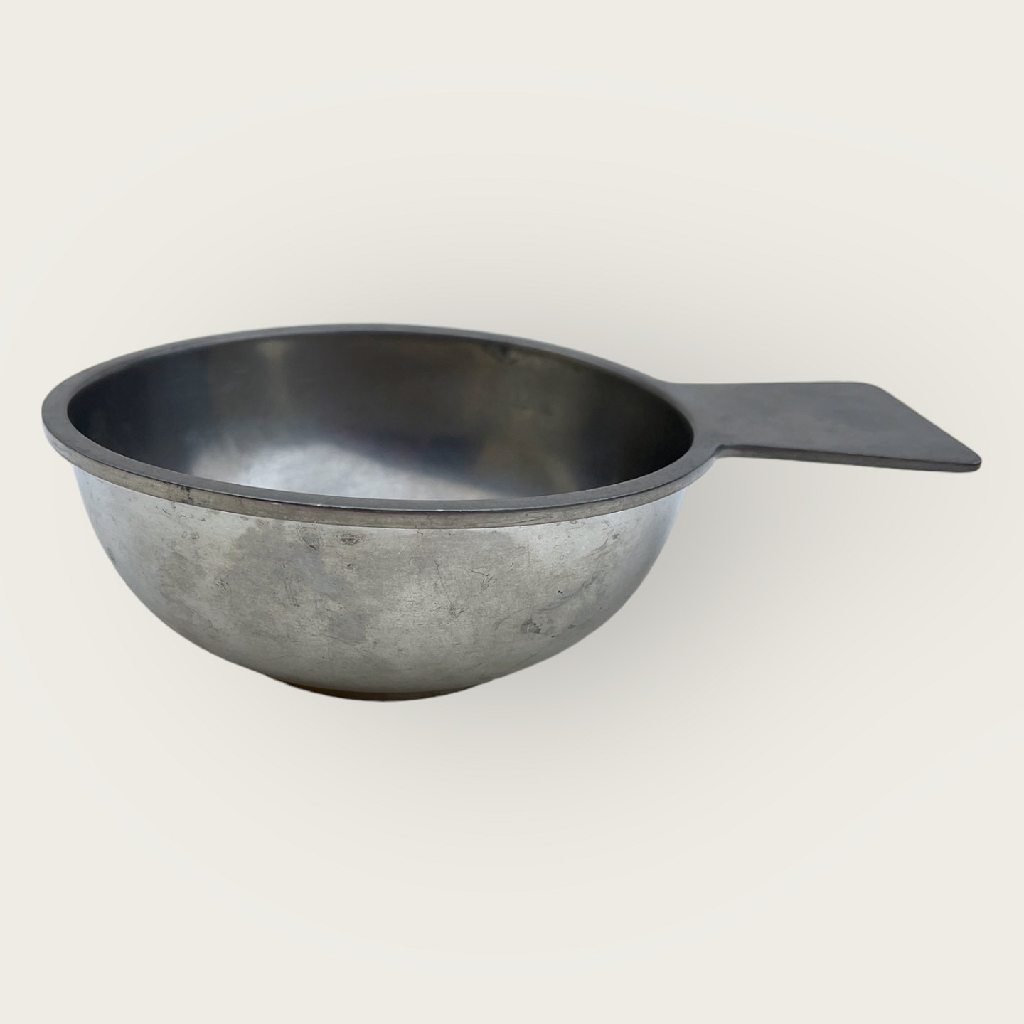 Just Andersen, Rund tin skål med håndtag, 18cm bred *Charmerende uperfekt*
