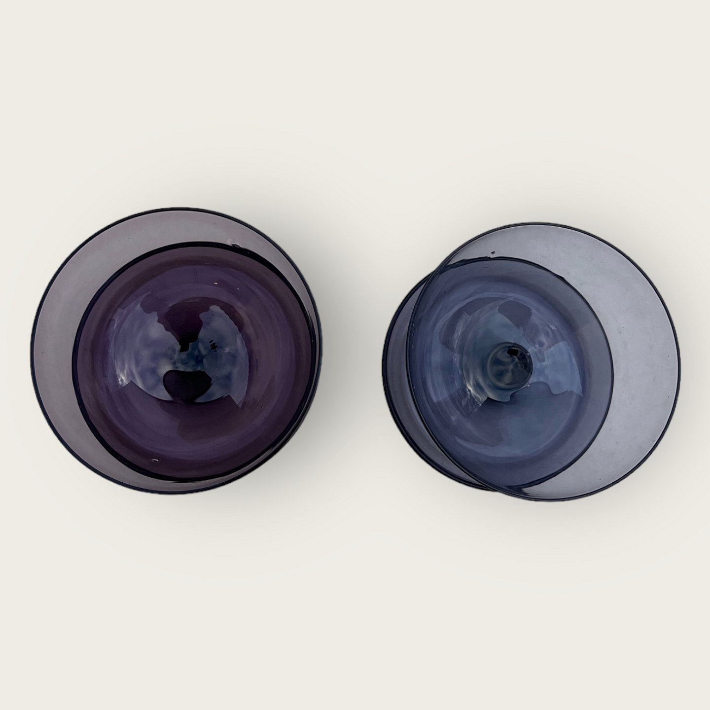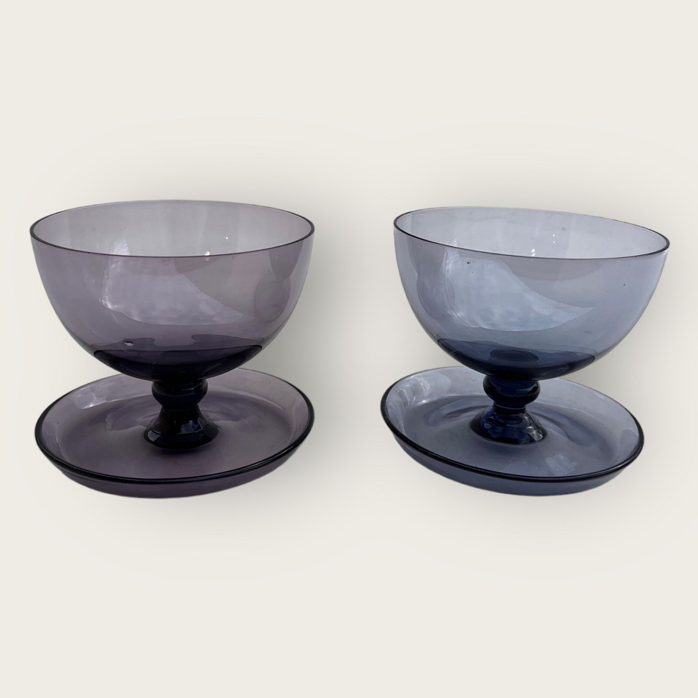 Farvet dessertskål, 2stk blå, 2stk violet, 10cm i diameter, 8cm høj *Pæn stand*