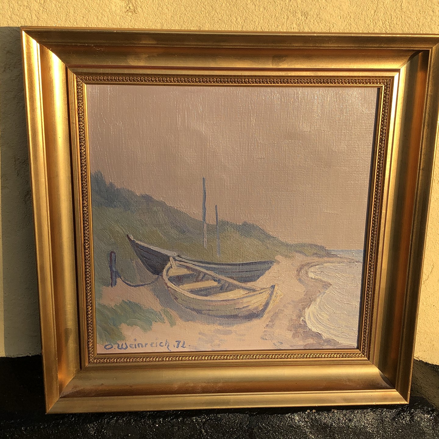 Ove Anker Juul Weinreich, Oliemaleri på lærred, signeret O. Weinreich 72, Mål med ramme 42x 42 cm