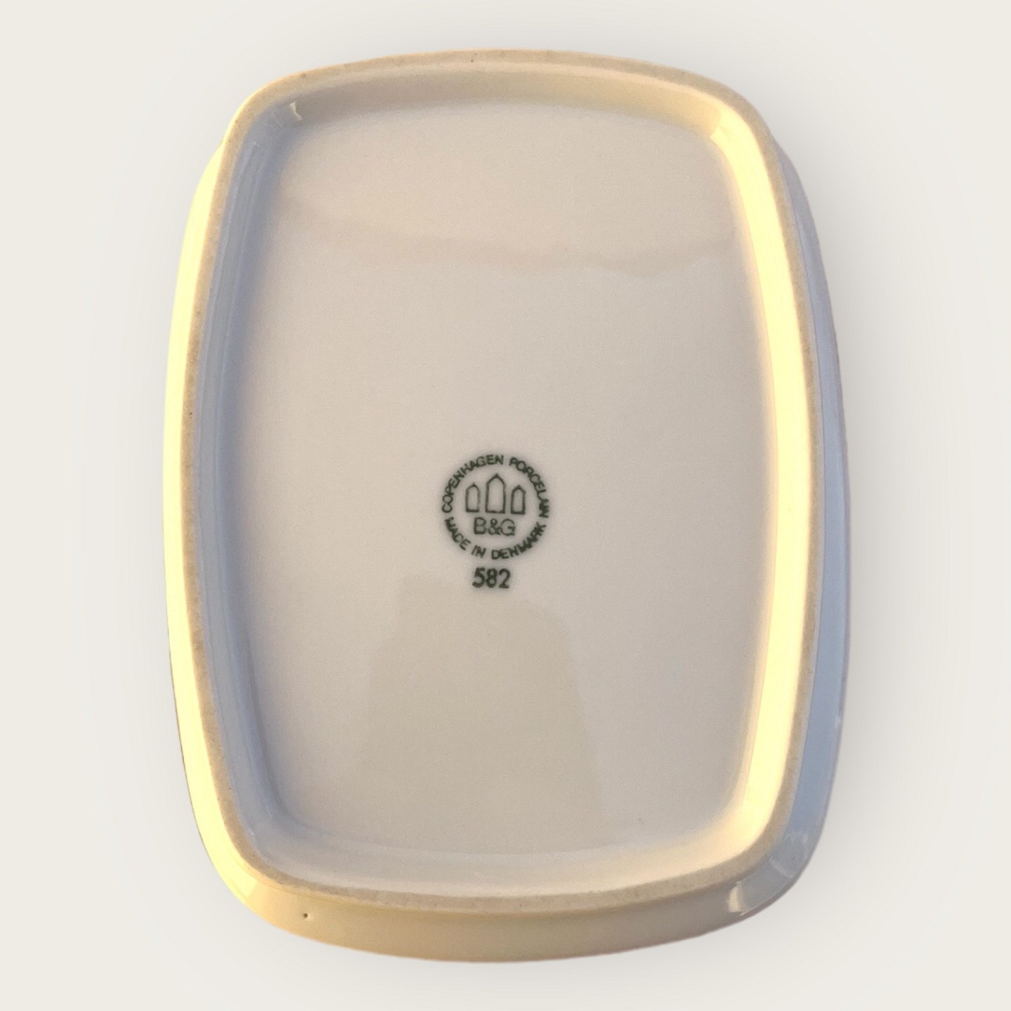 Bing & Grøndahl, Apotekerserien, Smørboks #582, 14,5cm bred, 11,5cm dyb, 7cm høj #582, Design Bo Bonfils *Pæn stand*