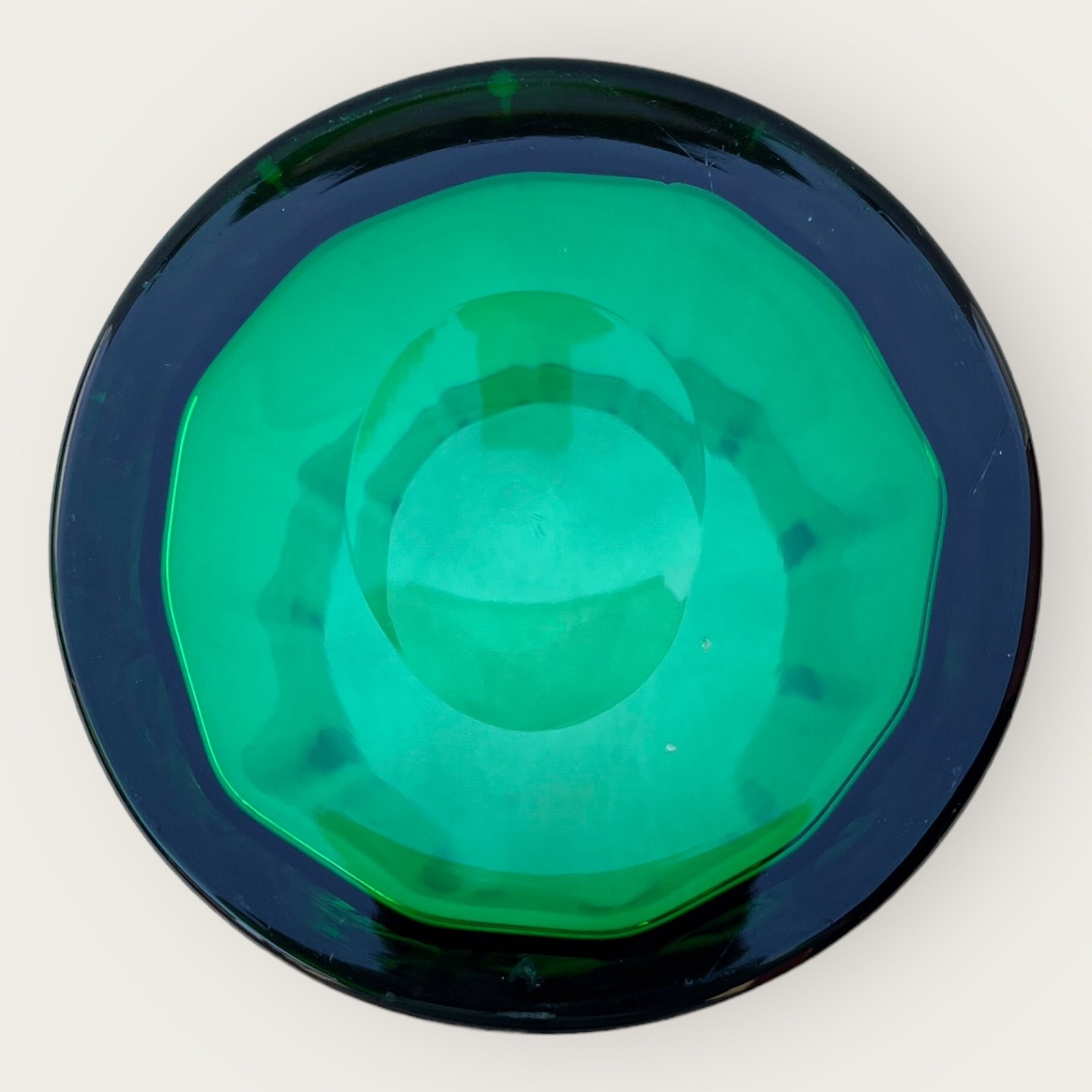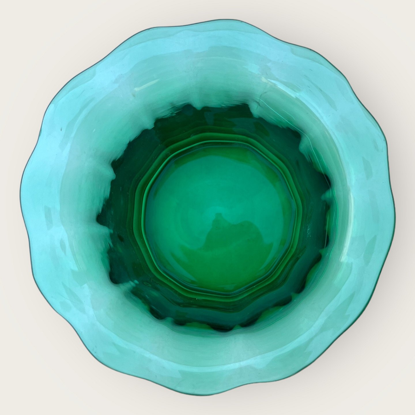Grøn glas vase / urtepotte, 15cm i diameter, 13cm høj *Pæn stand*
