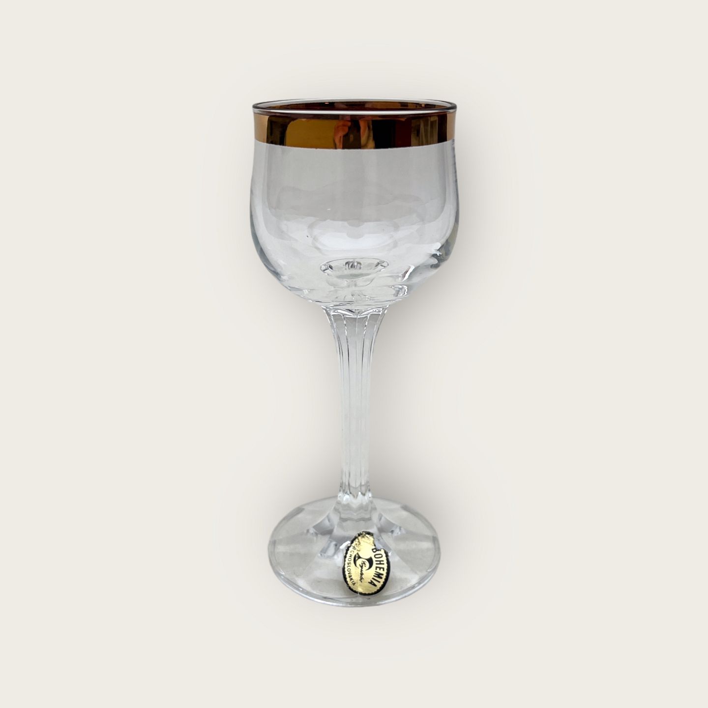 Bøhmisk krystal glas, Portvin, Med guldkant, 13cm høj, 5,5cm i diameter *Pæn stand*
