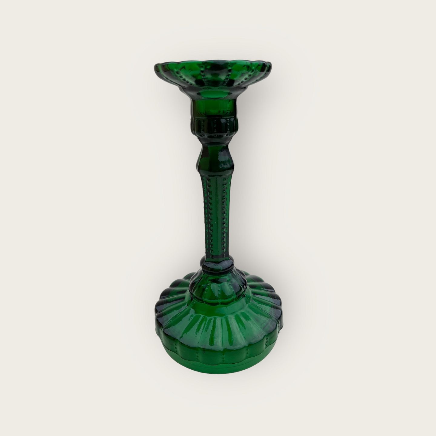 Presset glas, Grøn lysestage, 20cm høj, 10,5cm i diameter *Perfekt stand*