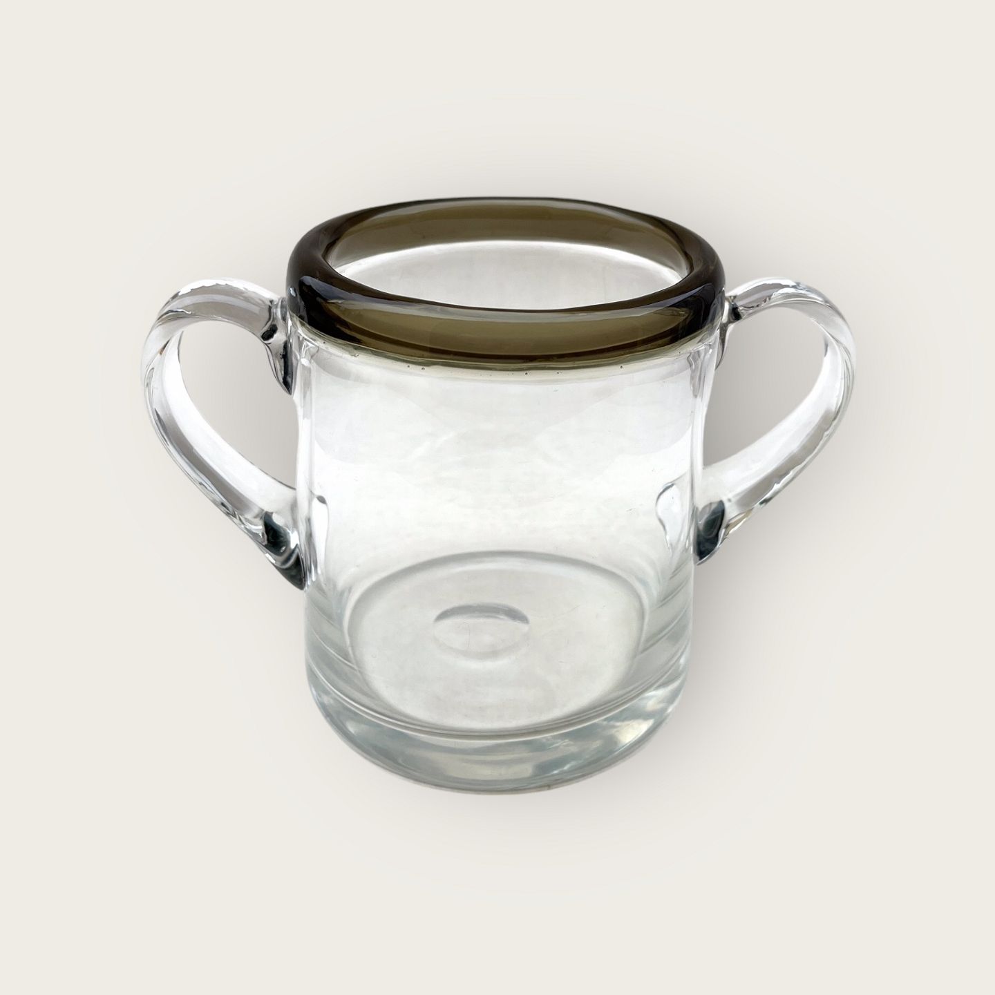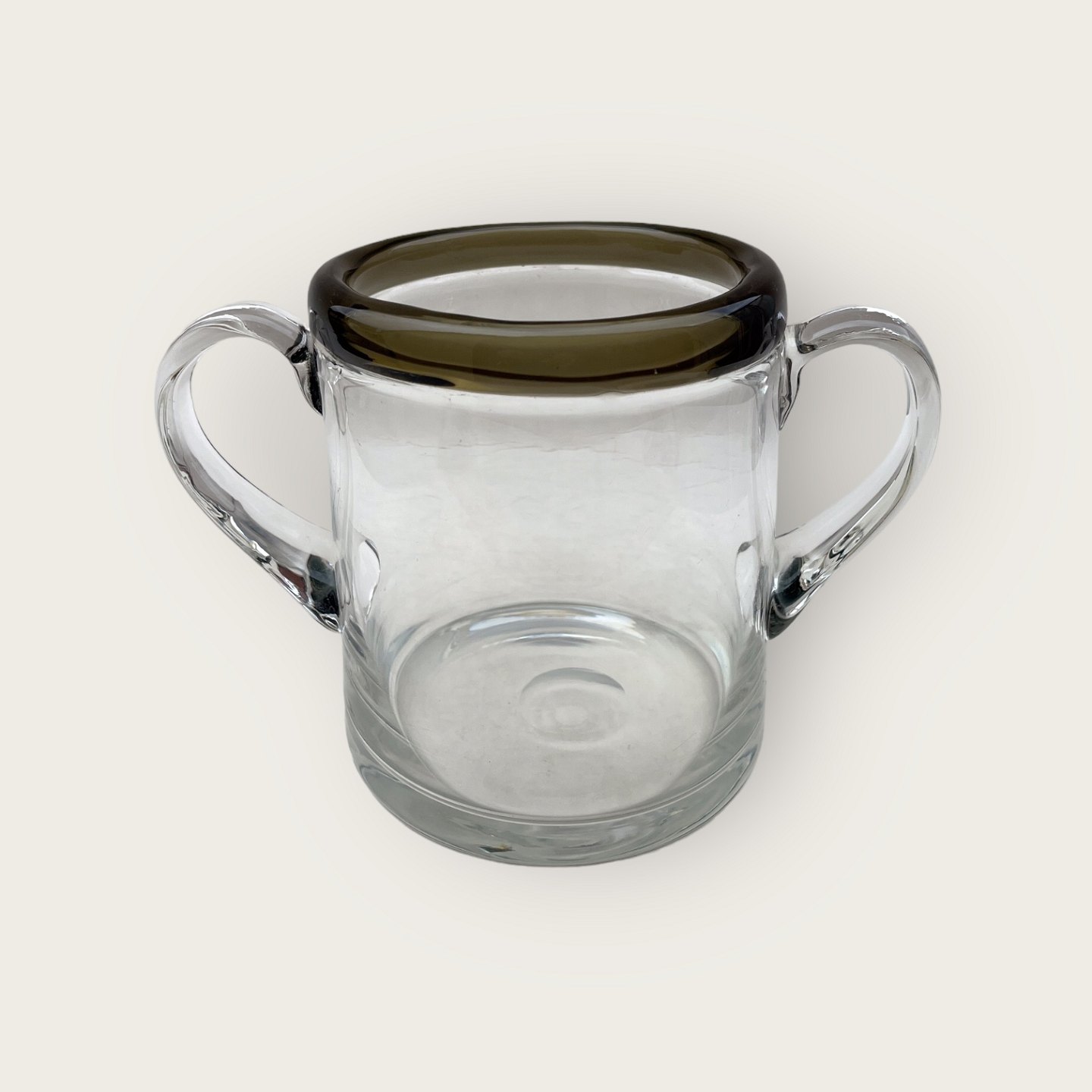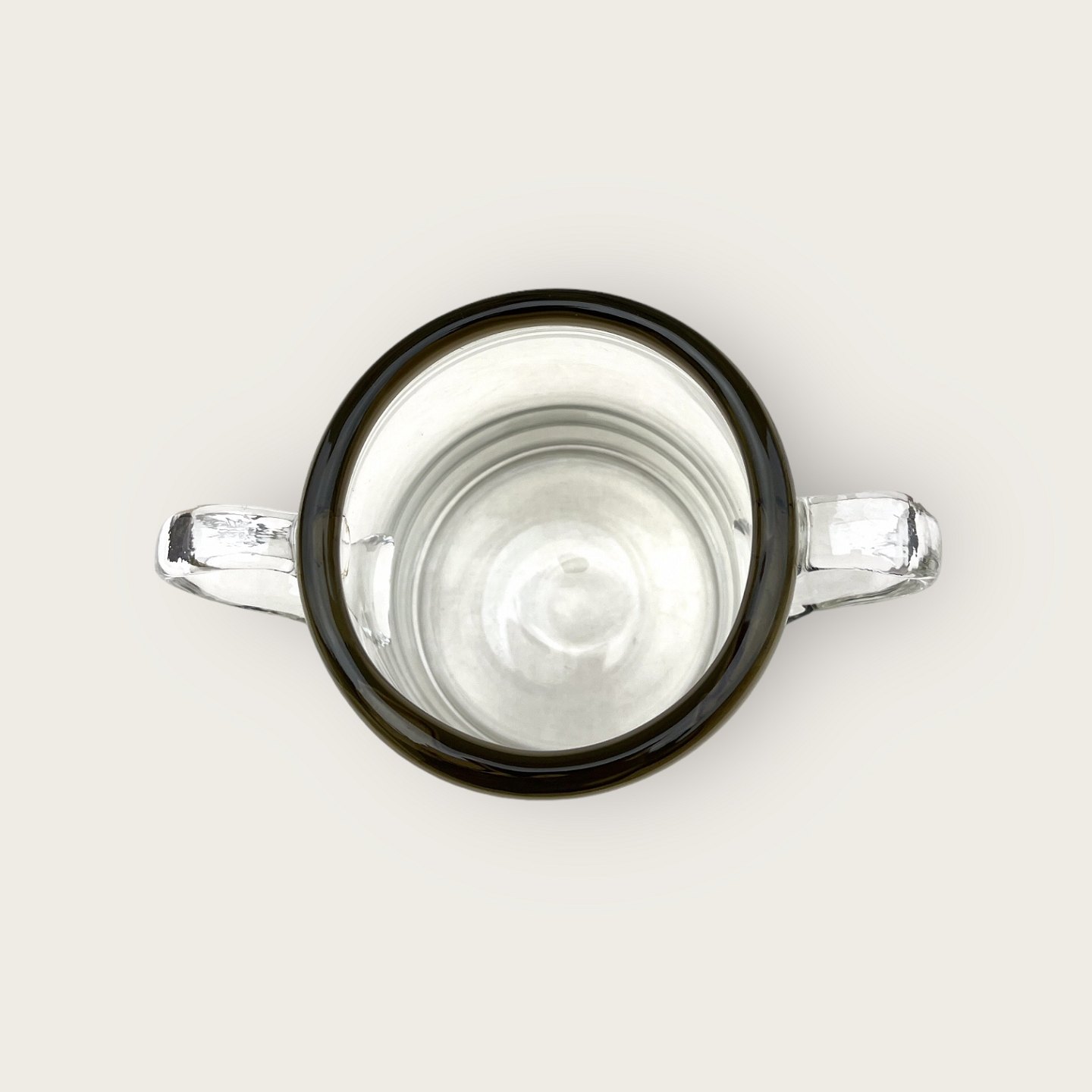 Glas isspand med ørehanke, 14cm høj, 22cm bred, fin stand.