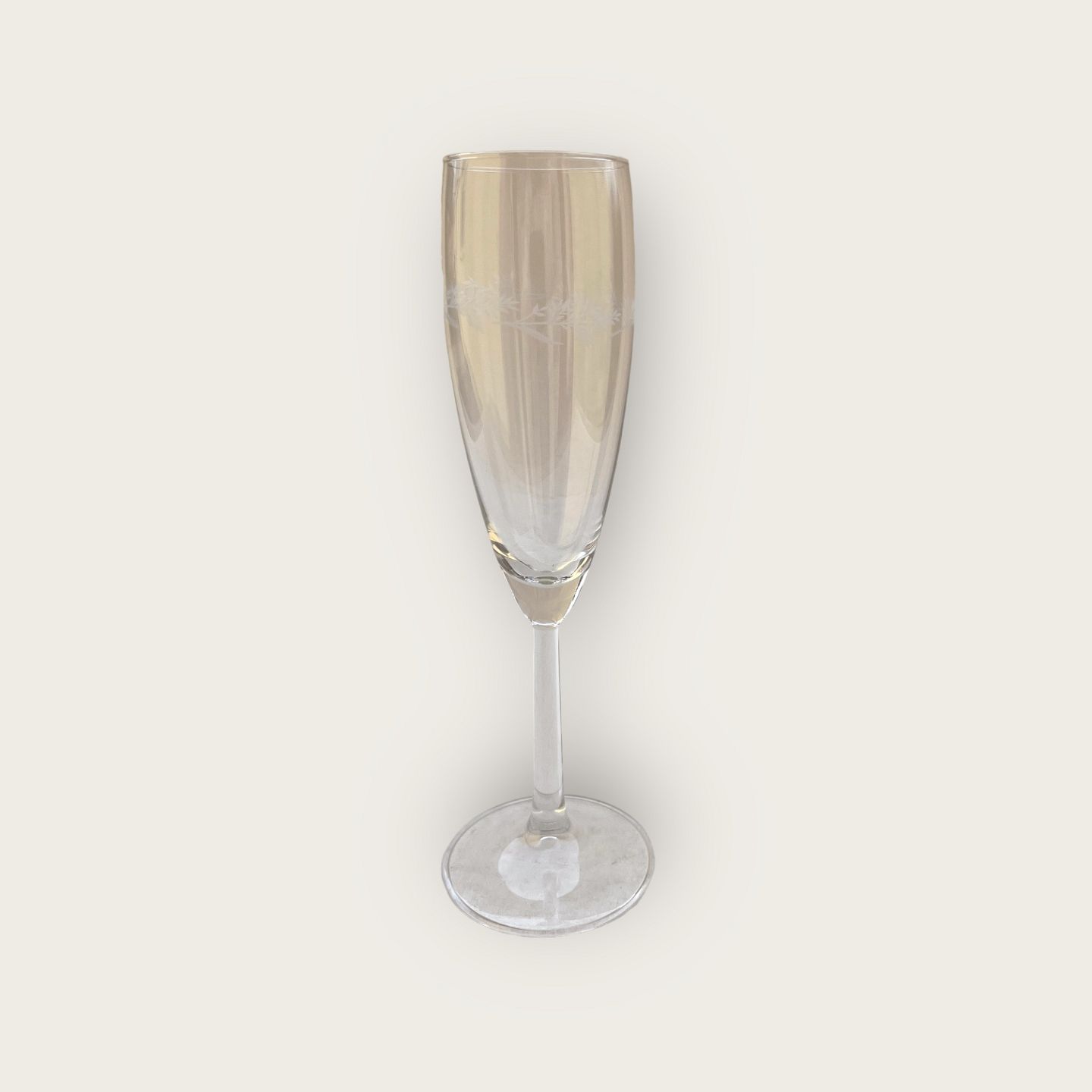 Mads Stage, Glass with vine leaf cuts, Champagne flutes, 22cm high, 7cm in diameter *Perfect condition*