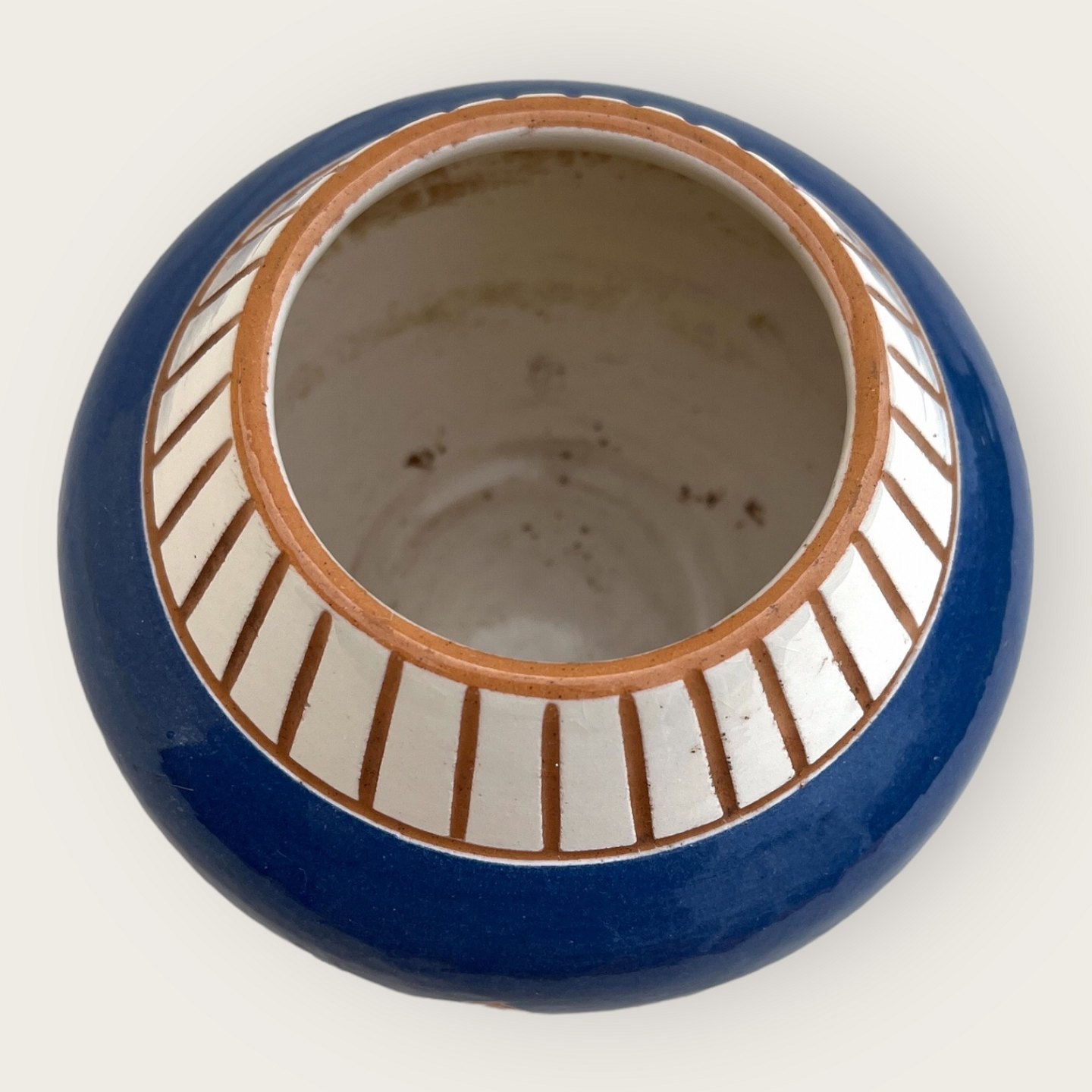 Haunsø keramik, Vase med heste, Blå glasur, 14cm bred, 11cm høj *Pæn stand*