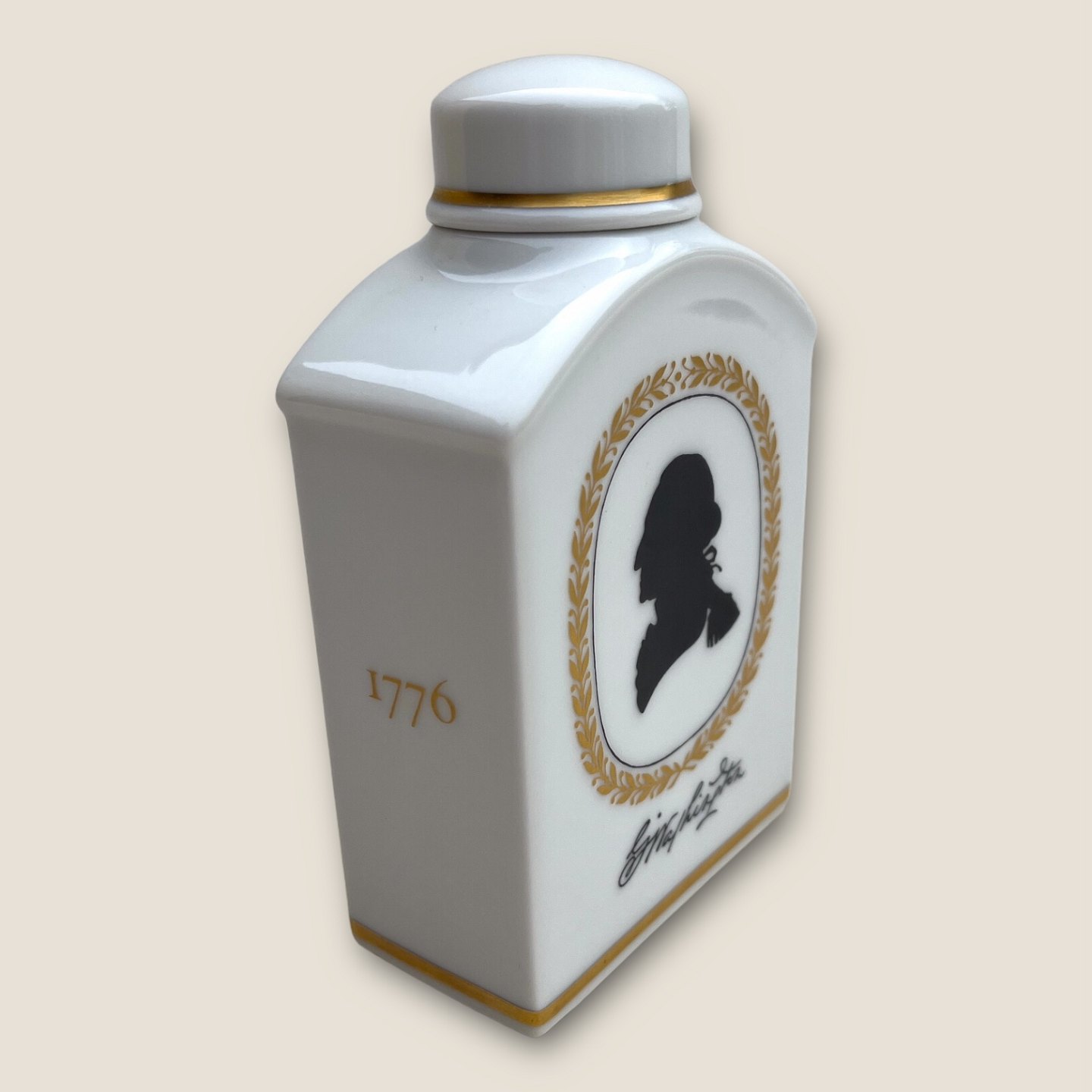 Royal Copenhagen, Tea tin, Georg Washington, 200 years 1776 - 1976, 10.5cm x 6.5cm x 3.5cm, 1st sorting *Perfect condition*