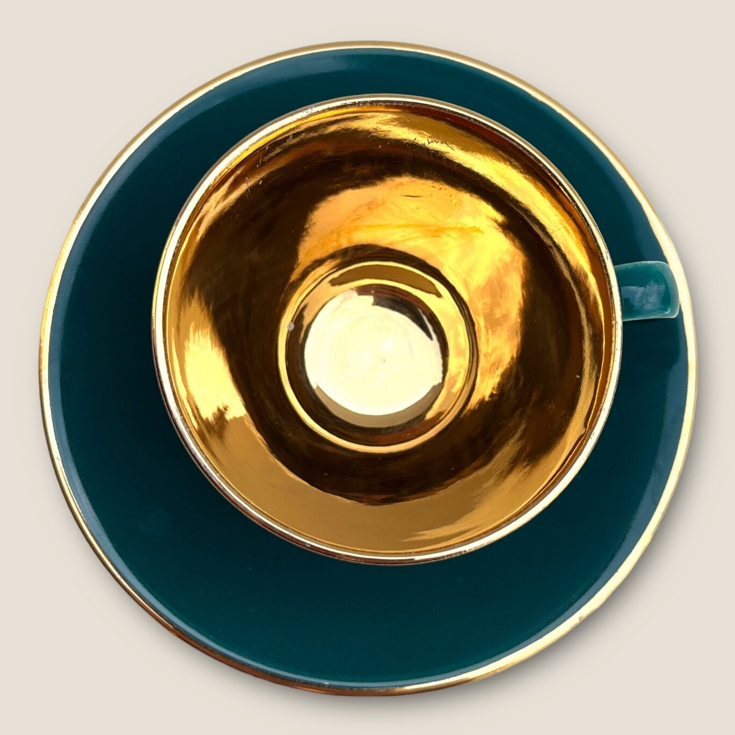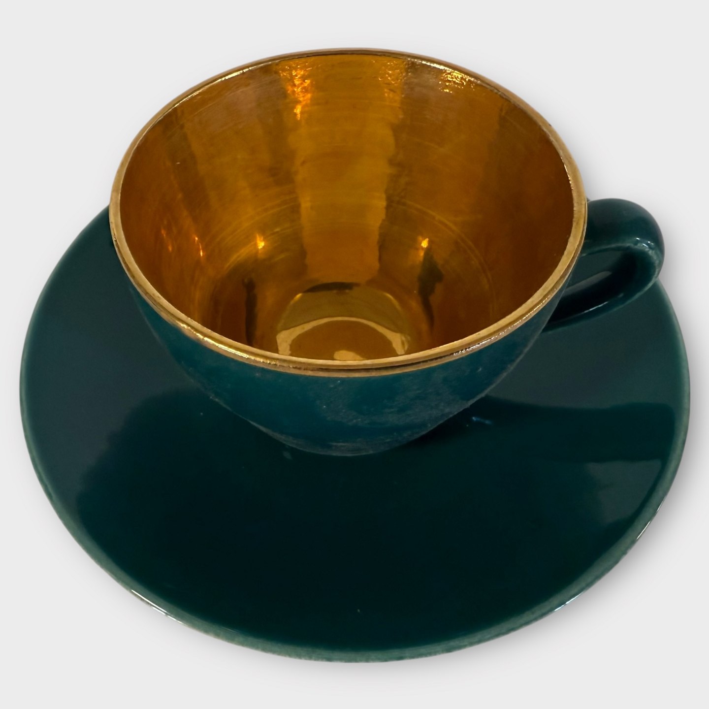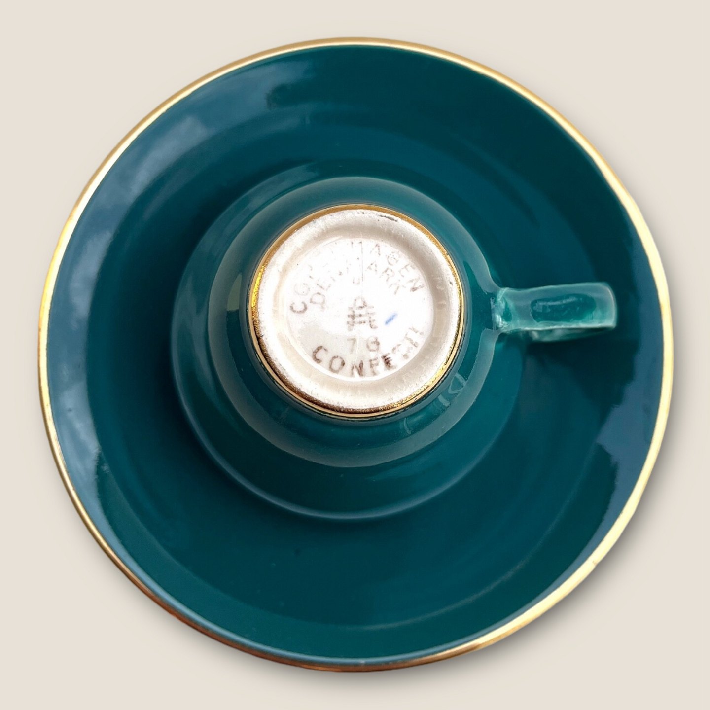Royal Copenhagen, Aluminia, Confetti, Moccakop, Mørk grøn, 7cm høj, 5,5cm høj, 2. sortering, underkop uden guldkant - se sidste foto *Pæn stand*