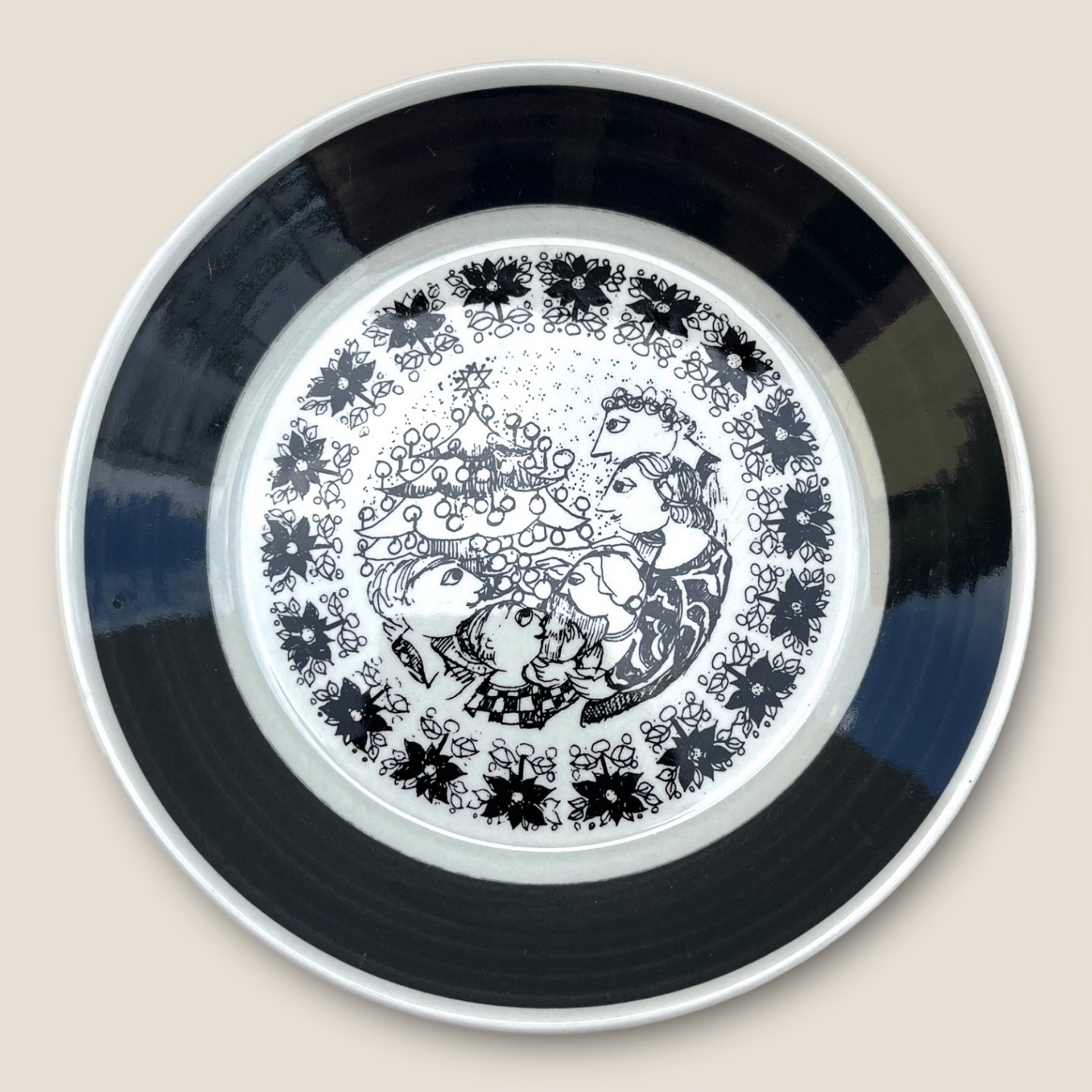 Bjørn Wiinblad, Mug of the month with plate, December, Black drawing, 8cm in diameter, 7cm high, Plate 15cm in diameter *Perfect condition*