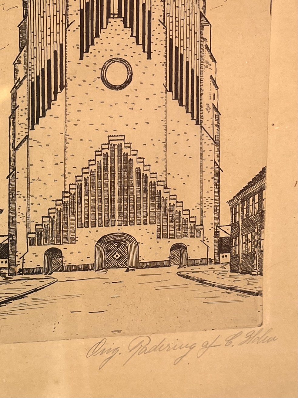 Copenhagen, Grundtvig Church, Etching, 26cm wide, 31.5cm high *Nice condition*