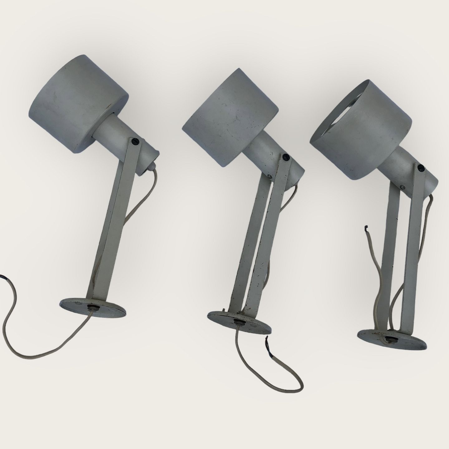 3 væglamper i hvidt metal og med porcelænsfatninger. Fremstår med nogle brugsspor / patinerede. Længde ca. 42 cm