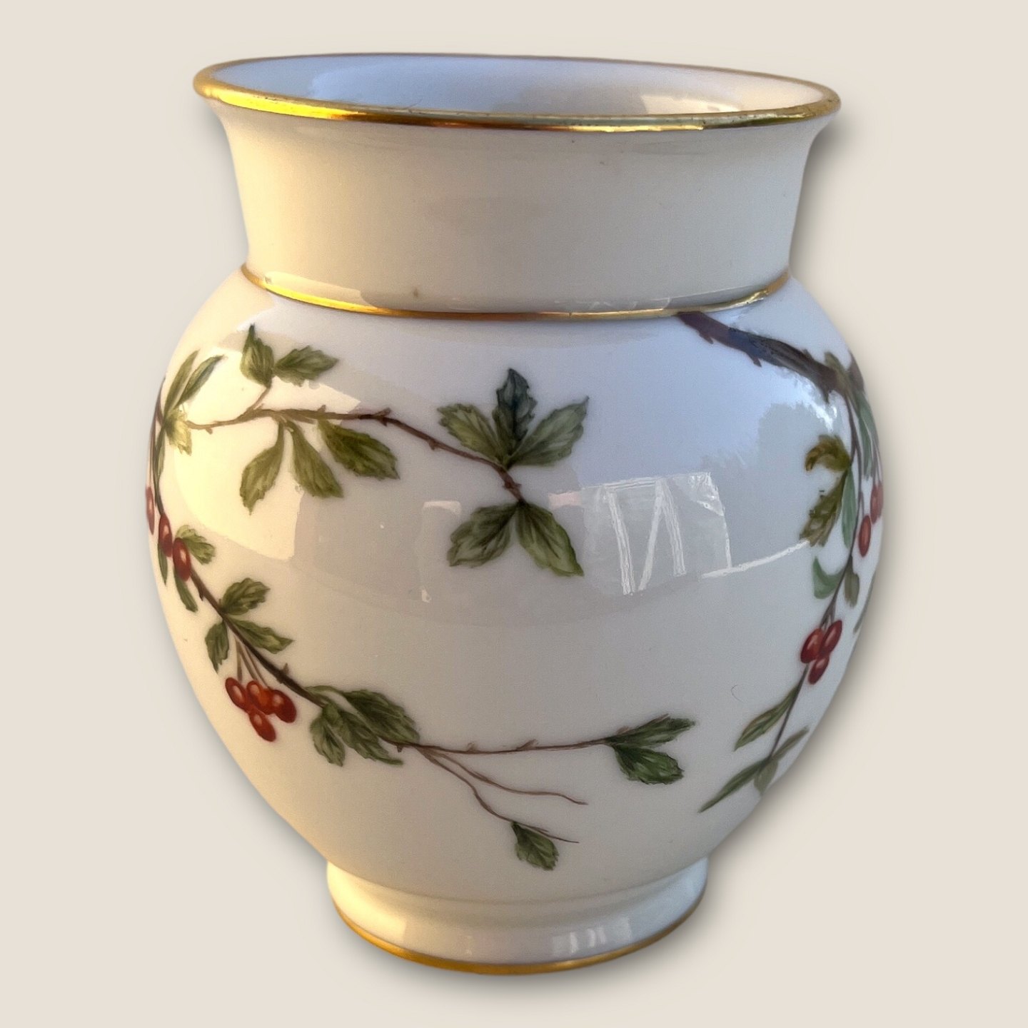 Bing & Grøndahl, Vase med rønnebærgren #635, 9,5cm høj, 8,5cm i diameter *Pæn stand*