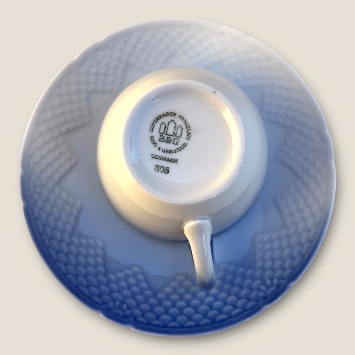 Bing & Grøndahl, Blå tone, Kaffekop #305, 7,5cm i diameter, 6,5cm høj *Pæn stand*