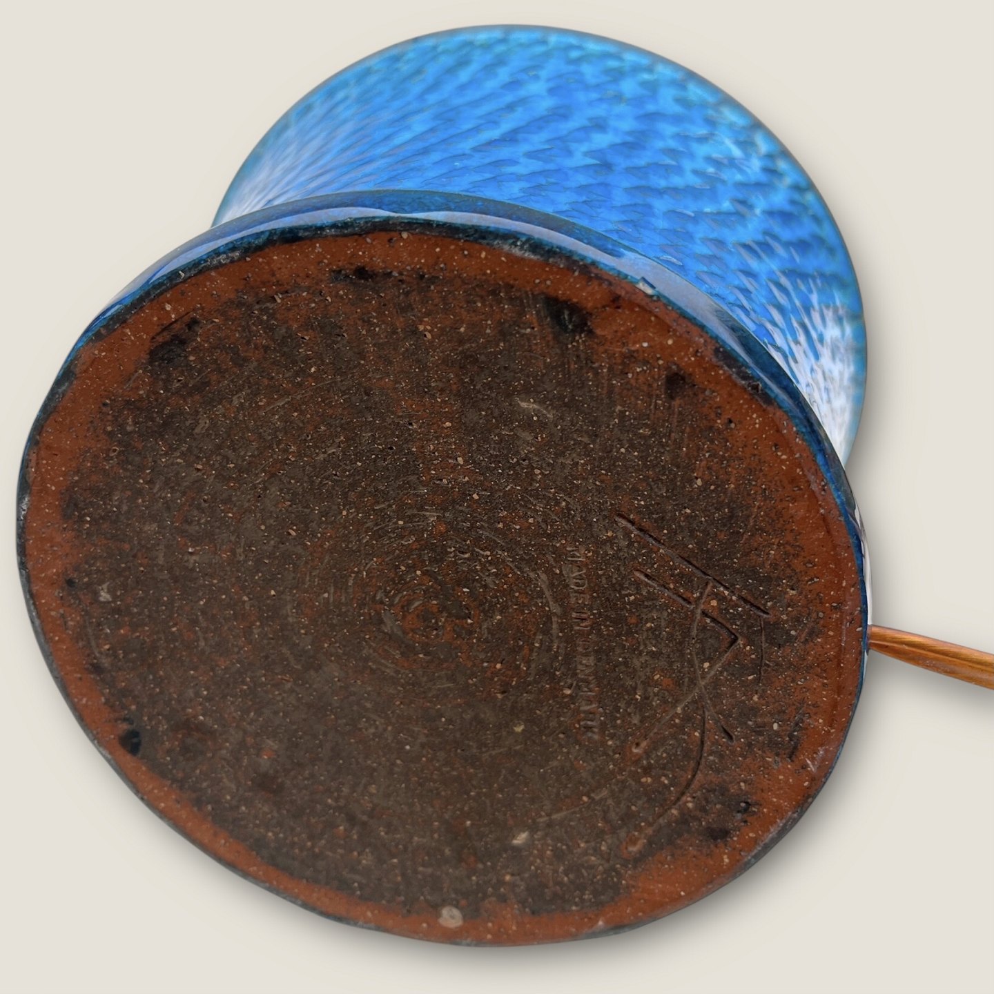 Kähler ceramics, Blue-glazed table lamp, 40cm high (incl. socket) 16cm in diameter, Signed HAK *With small damage on the side otherwise in good condition*