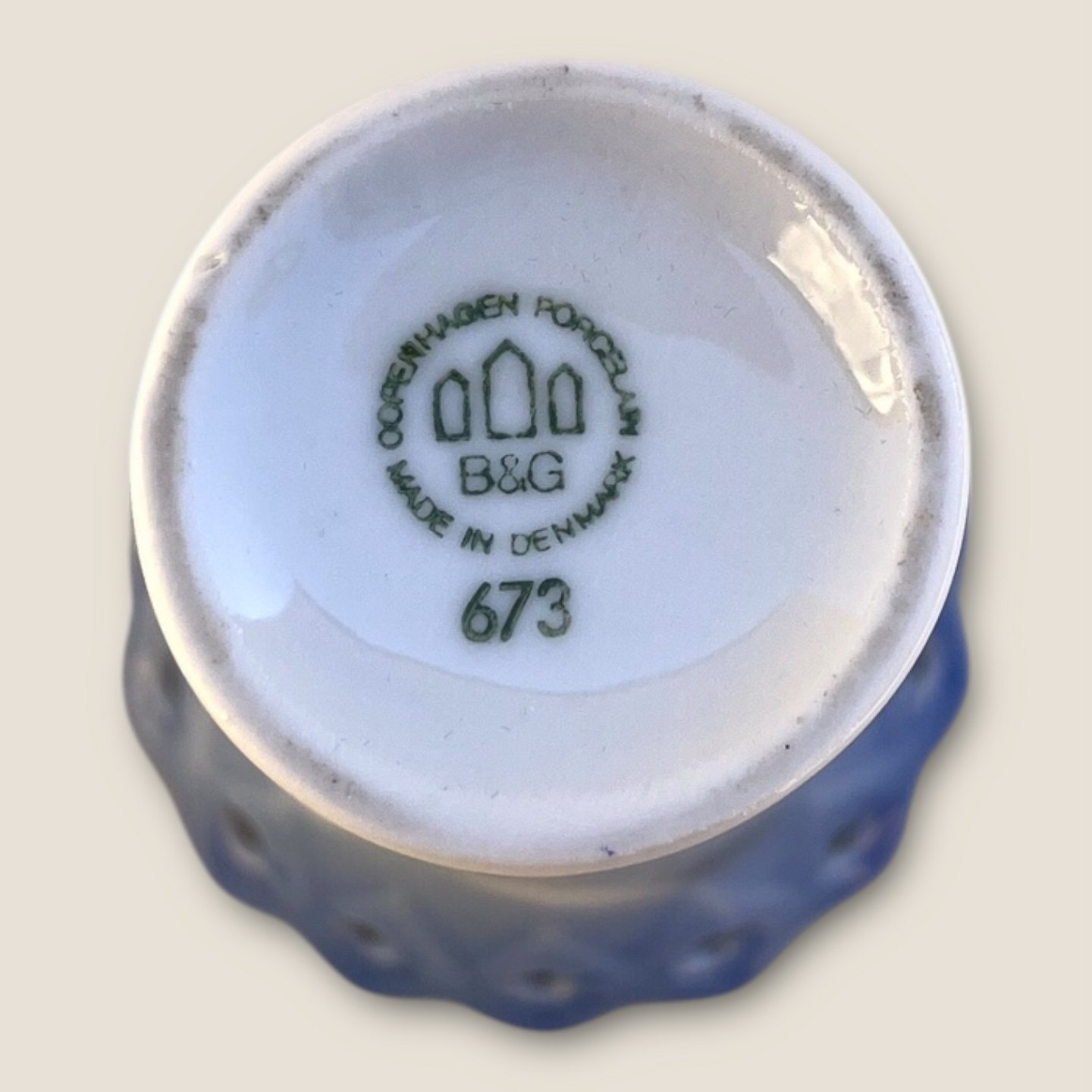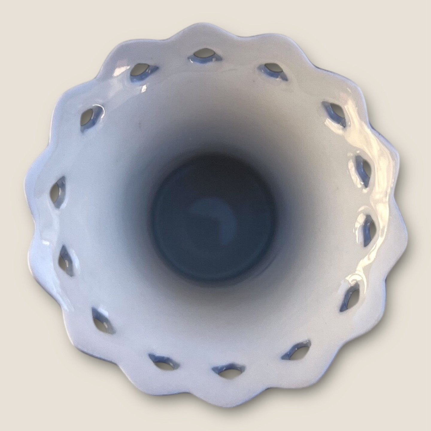 Bing & Grøndahl, Måge uden guld, Lille vase med gennembrudt kant #673, 6cm i diameter, 7cm høj, Design Fanny Garde *Pæn stand*