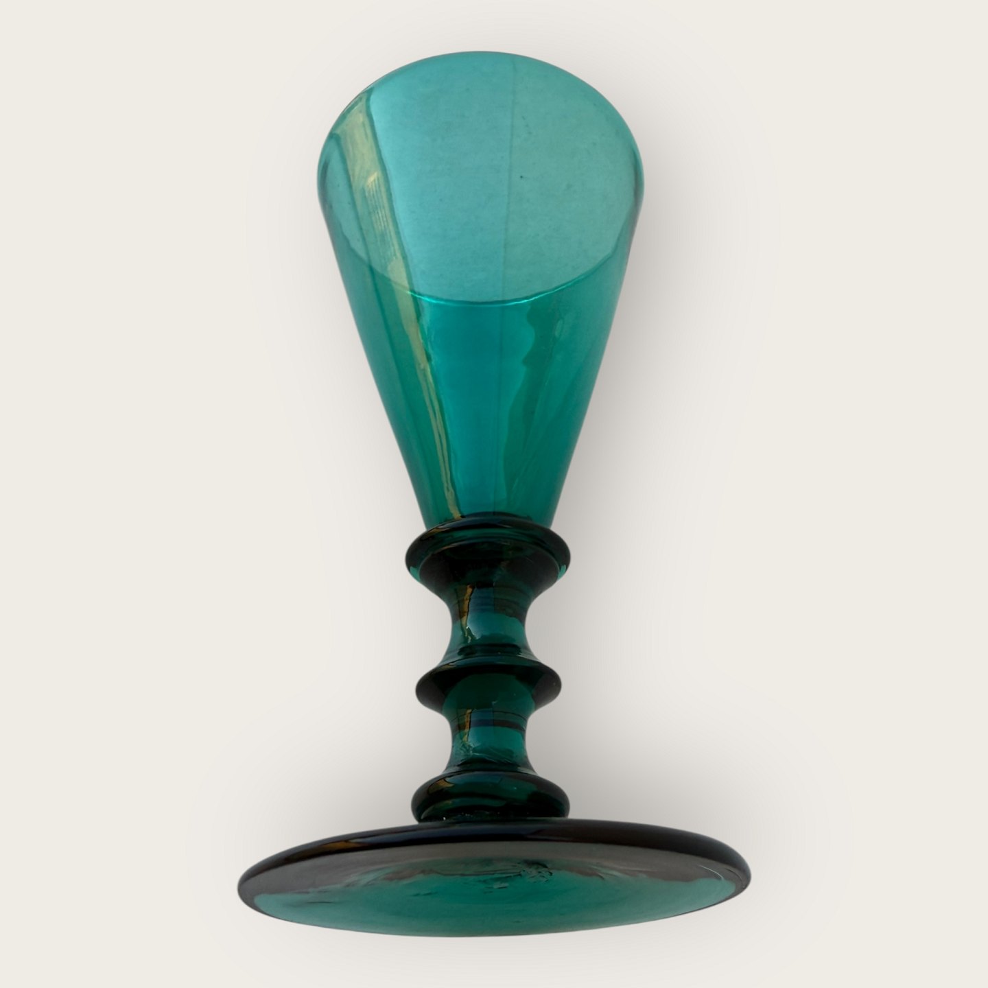 Anglais glas, glat, blågrønt, 12,8cm højt, 6,4 cm øverst, 6,2 cm fod.