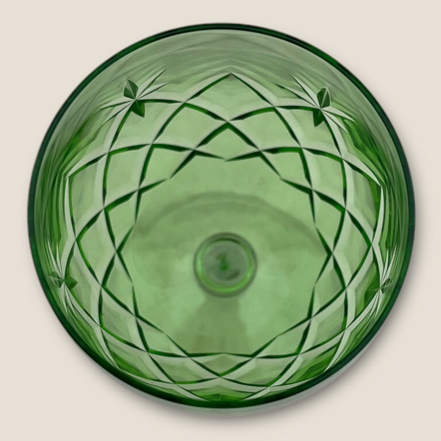 Krystal glas, Med grøn kumme, 13,5cm høj, 6cm i diameter *perfekt stand*